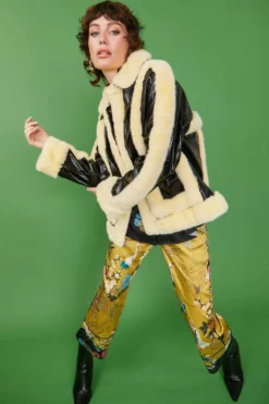JAYLEY Yellow Faux Shearling Aviator Jacket