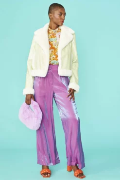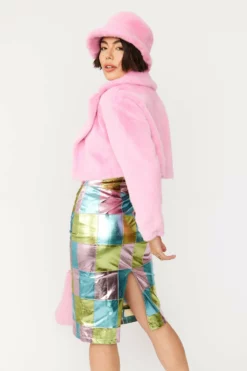 JAYLEY Pink And Metallic Silver Faux Shearling Reversible Hooded Jacket