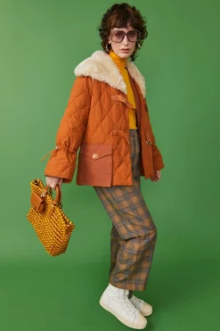 JAYLEY Rust Shearling Parka With Down And Leather Details