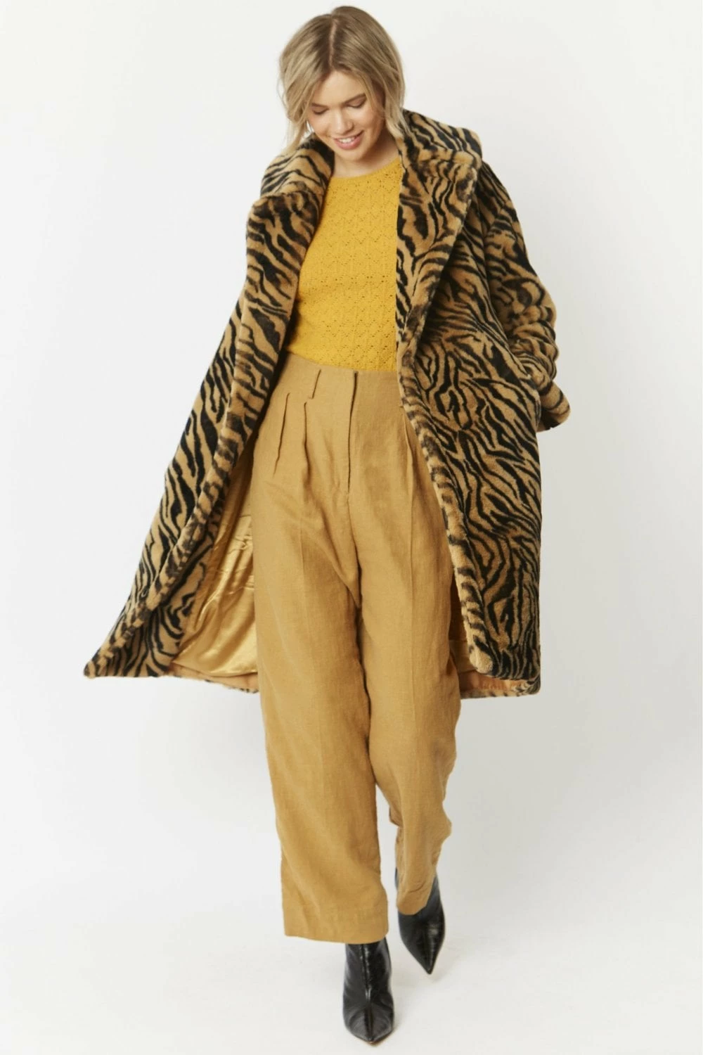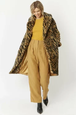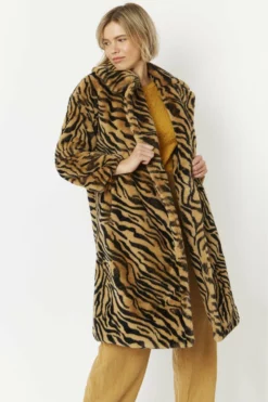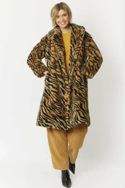 Cut to a flattering mid-length this faux fur coat is a timeless piece that’s associated with glamour and elegance. Featuring side pockets, full lining and peaked lapels, this coat is made to be worn open, and to accentuate your below dress or pair or trousers.