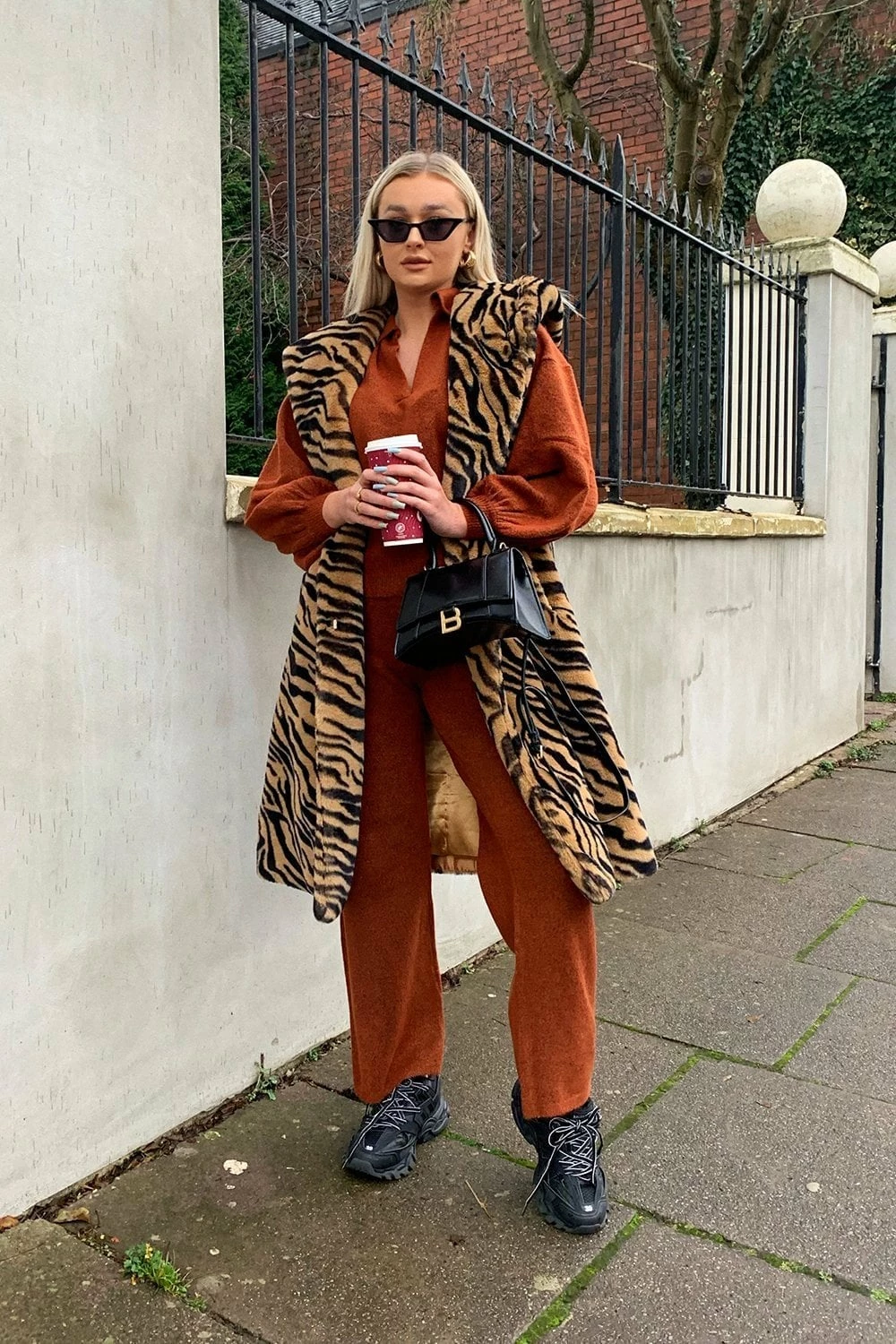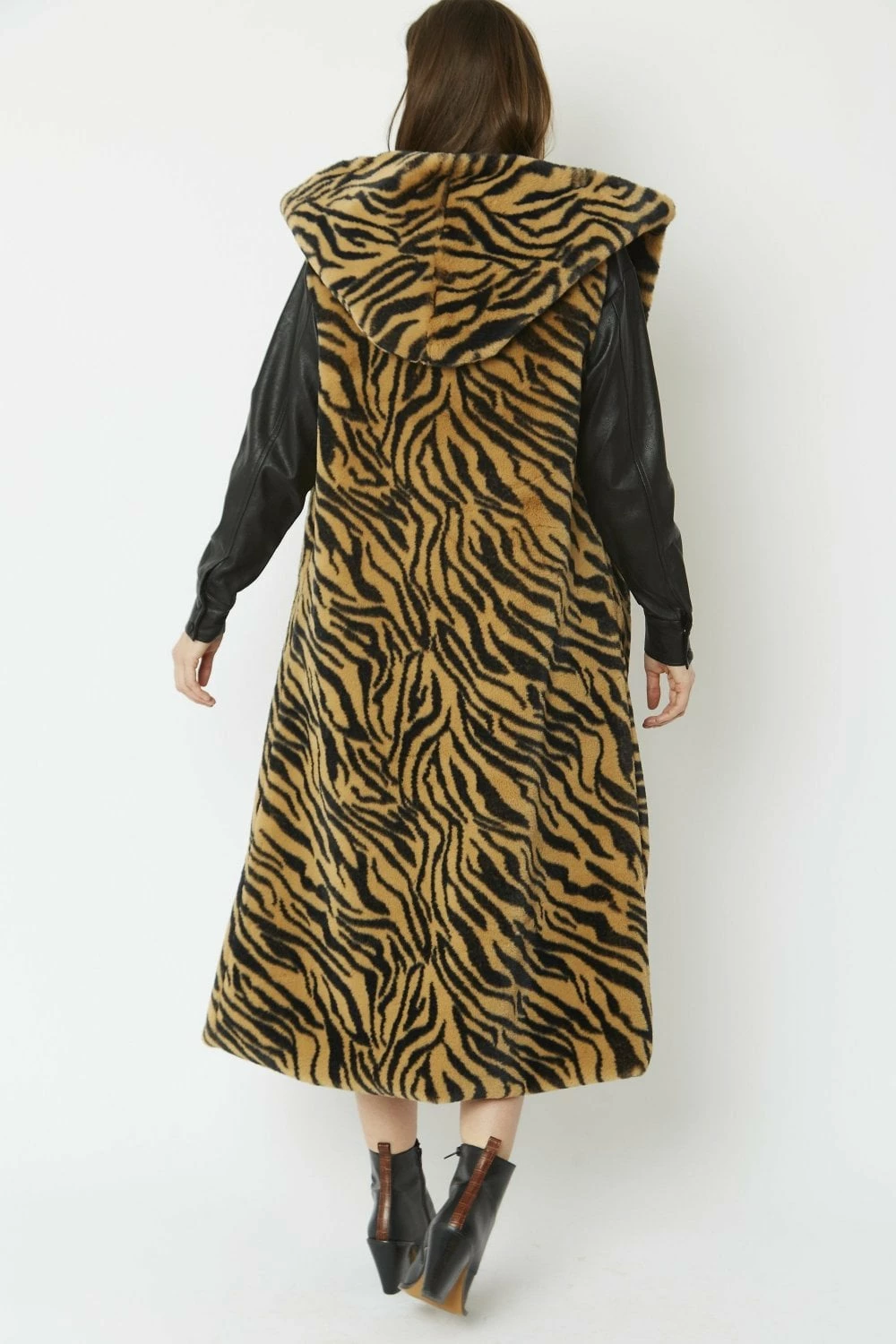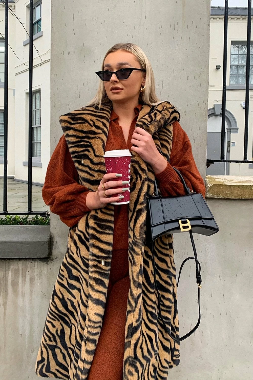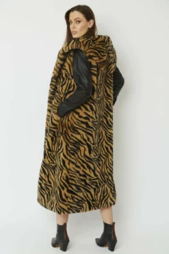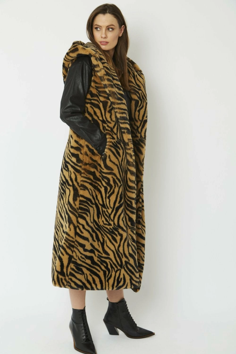 Made to make a bold statement that stands out from the fashion pack, this faux fur all-over animal print, double-breasted gilet is fun and fierce. We love the full-length longline look, adding a unique spin on the most-loved texture trend. Featuring a snuggly hood and deep pockets, this gilet is one we’re sure you’ll love.