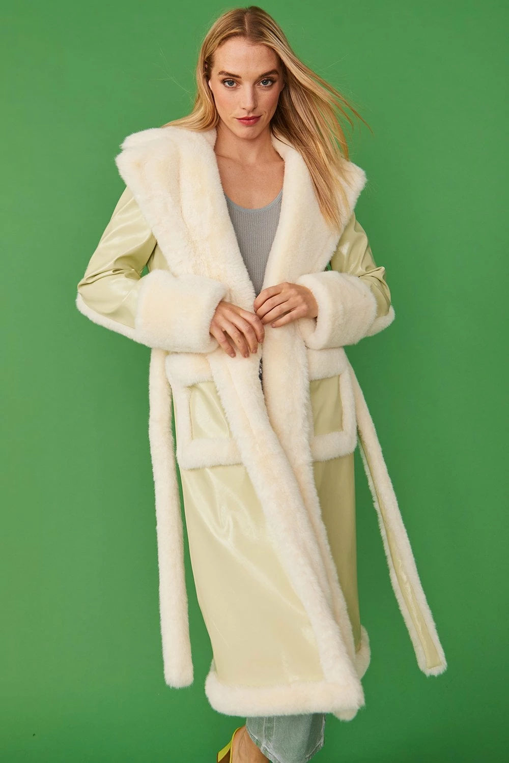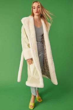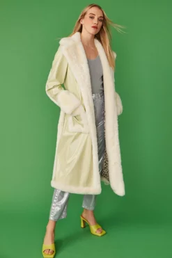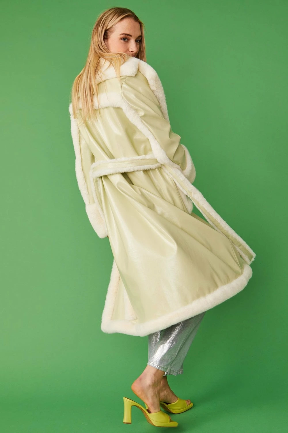 Look effortlessly stylish in this orange leather jacket with yellow faux fur detail. Featuring oversized pockets with matching trim and a leopard print inner lining this piece is sure to make a statement. The versatile maxi length will compliment any outfit and the snap buttons make it practical and snug.