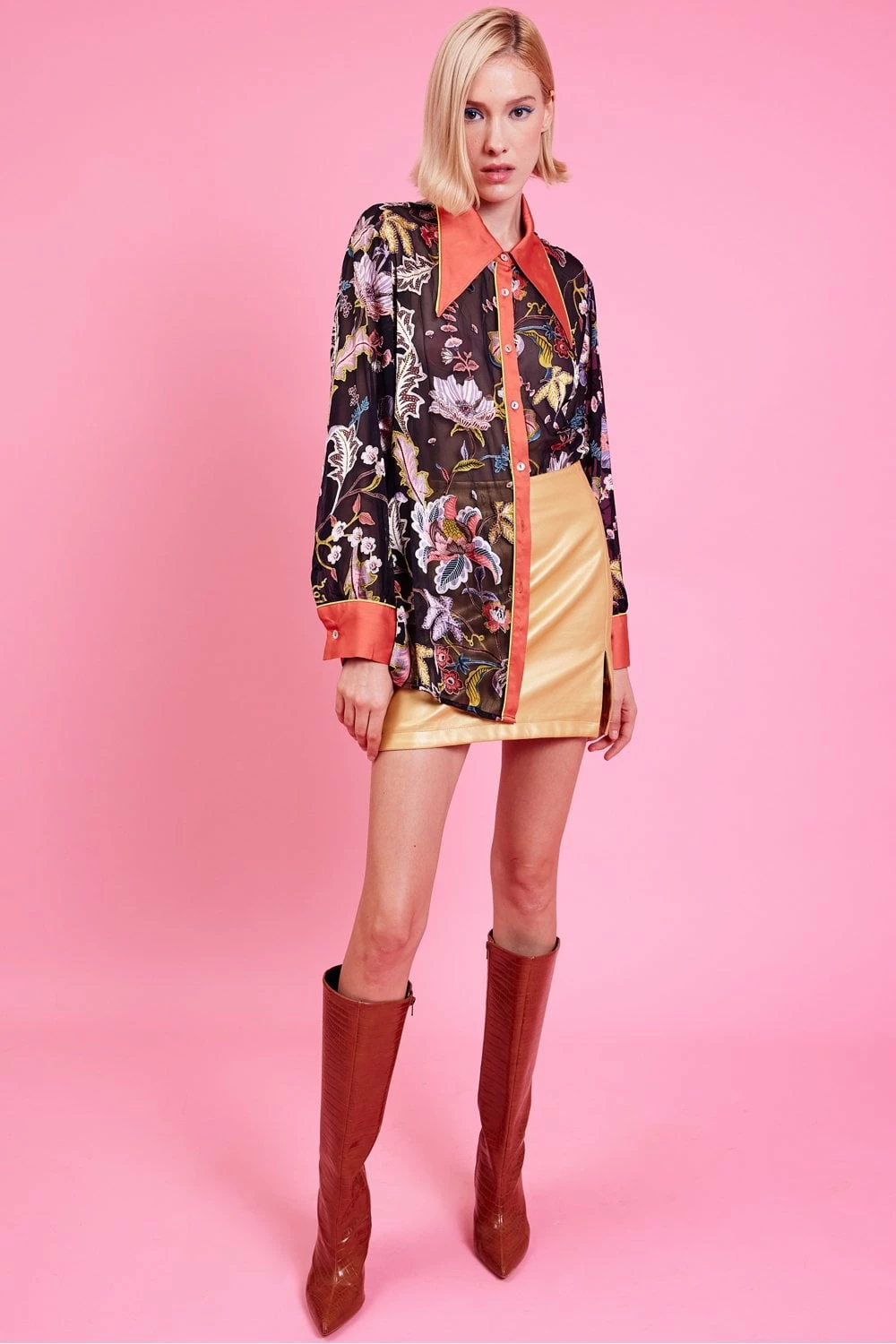 Keep cool in our sweet shirt featuring a gorgeous blue and green design, perfect for all year round. Classic collar and button up front and a dip hem.