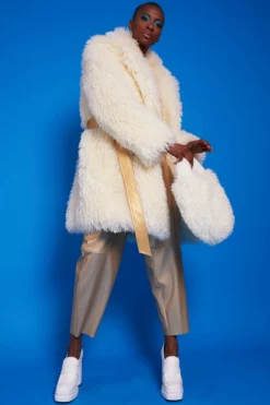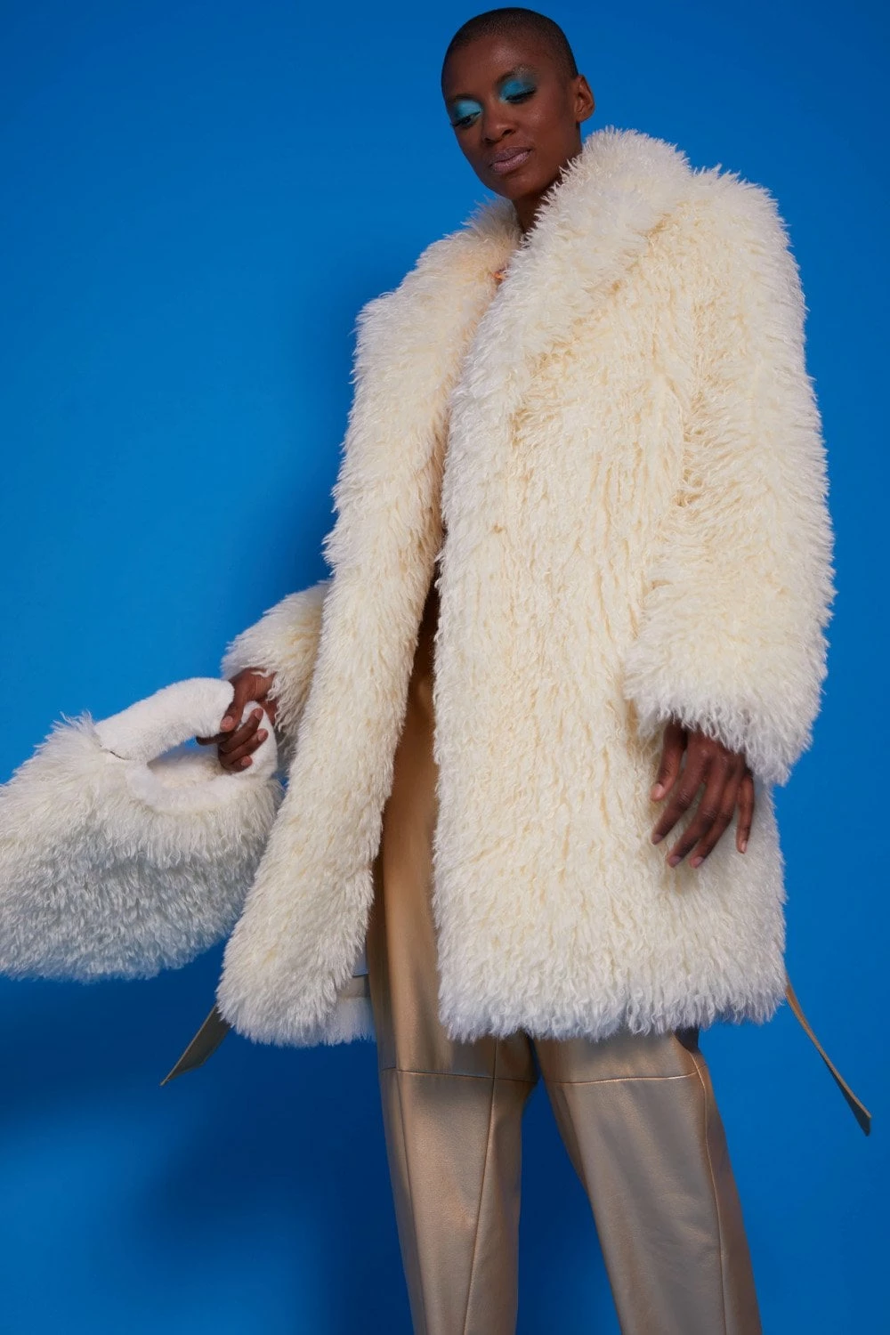The development of Mongolian fur has come a long way. We adore this Bamboo Faux Fur Coat with full lining and leather details. This coat is knitted faux fur, making it extra fluffy and less likely to lose any fibres.