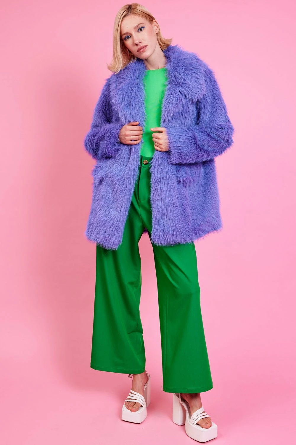 JAYLEY Bamboo Faux Fur Lilac Midi Coat