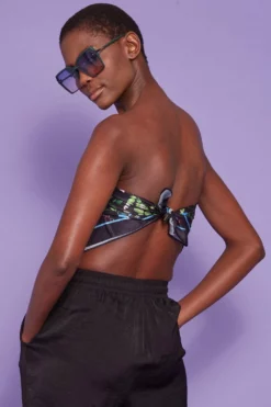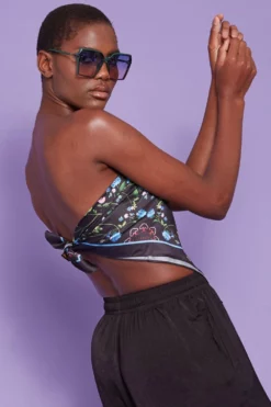 The silk scarf trend will never go out of fashion, this silk scarf features a really bold beautiful abstract print. The size of this scarf is perfect for hair wraps, styling as a top, or wearing around your neck. The possibilities are endless.