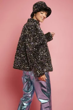 Sequin ribbed texture will elevate all your day-to-night looks! Cropped length with zip and press stud fastening. We just love how this instantly adds sparkle to your outfit!