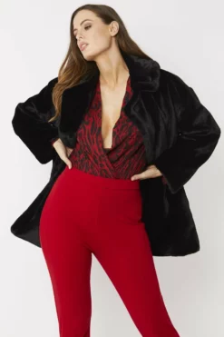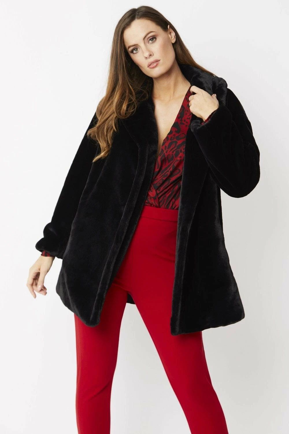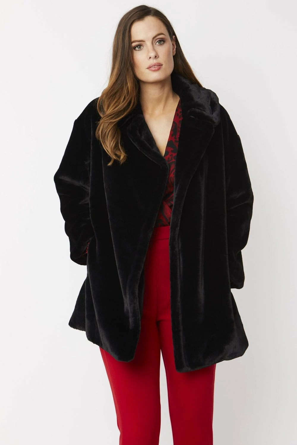 Jayleys iconic faux fur midi coat with silk blend lining is a real statement piece. Beautiful and bold this sumptuously soft coat will keep you warm and in style throughout the cold wintry months.