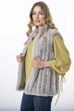 Expertly crafted from the finest faux fur, this midi-maxi length gilet features vertical panelling with gorgeous faux fur and suede. Accompanied with deep side pockets and hook and eye front fastening this gilet is both practical and elegant.