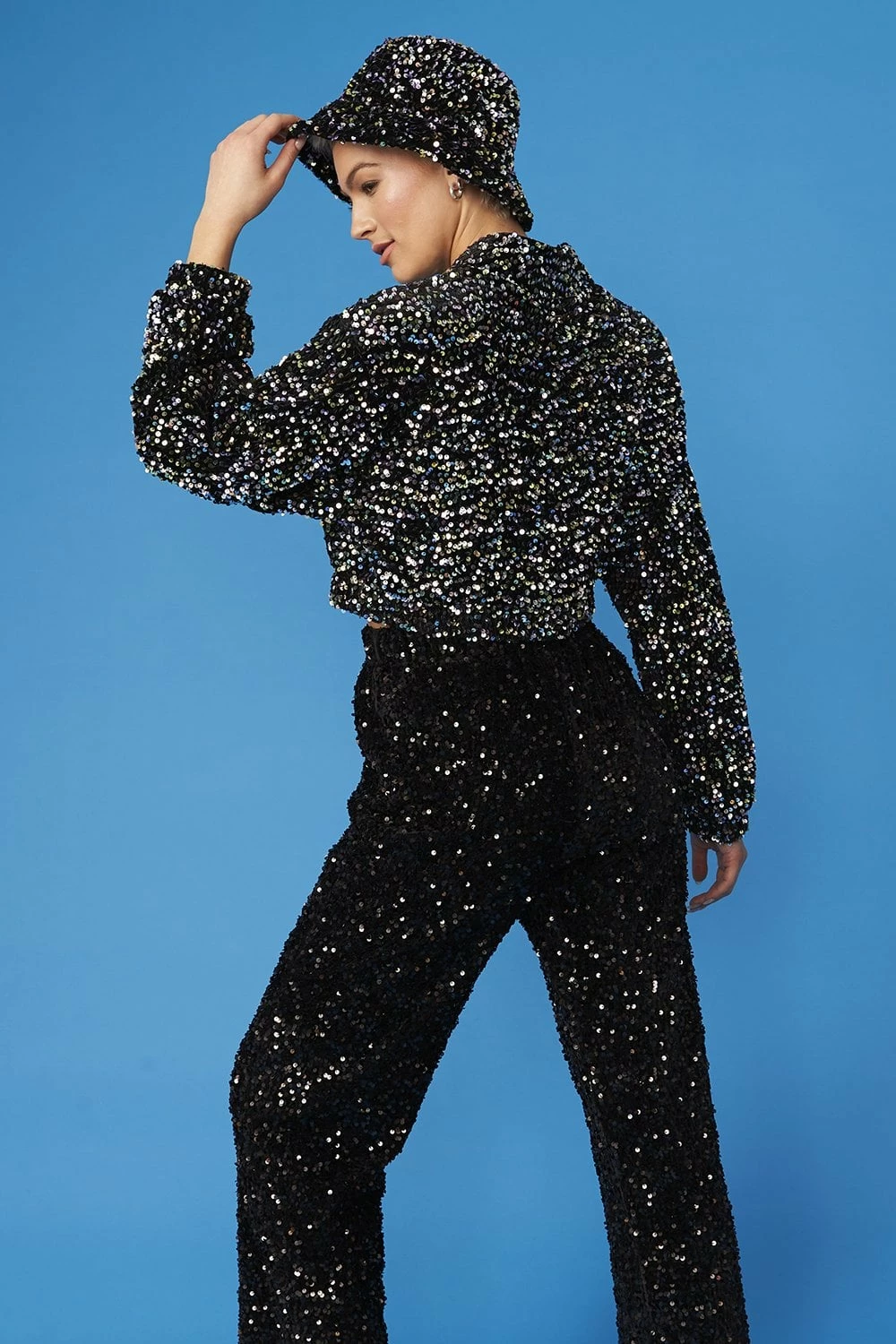 Feeling the breeze in the summer evenings? Well, our sequin-cropped biker jacket has you covered! Features a stunning Sequin ribbed texture that will help elevate any look of yours.