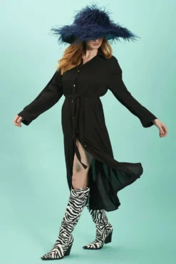 JAYLEY Black Silk Blend Maxi Shirt Dress