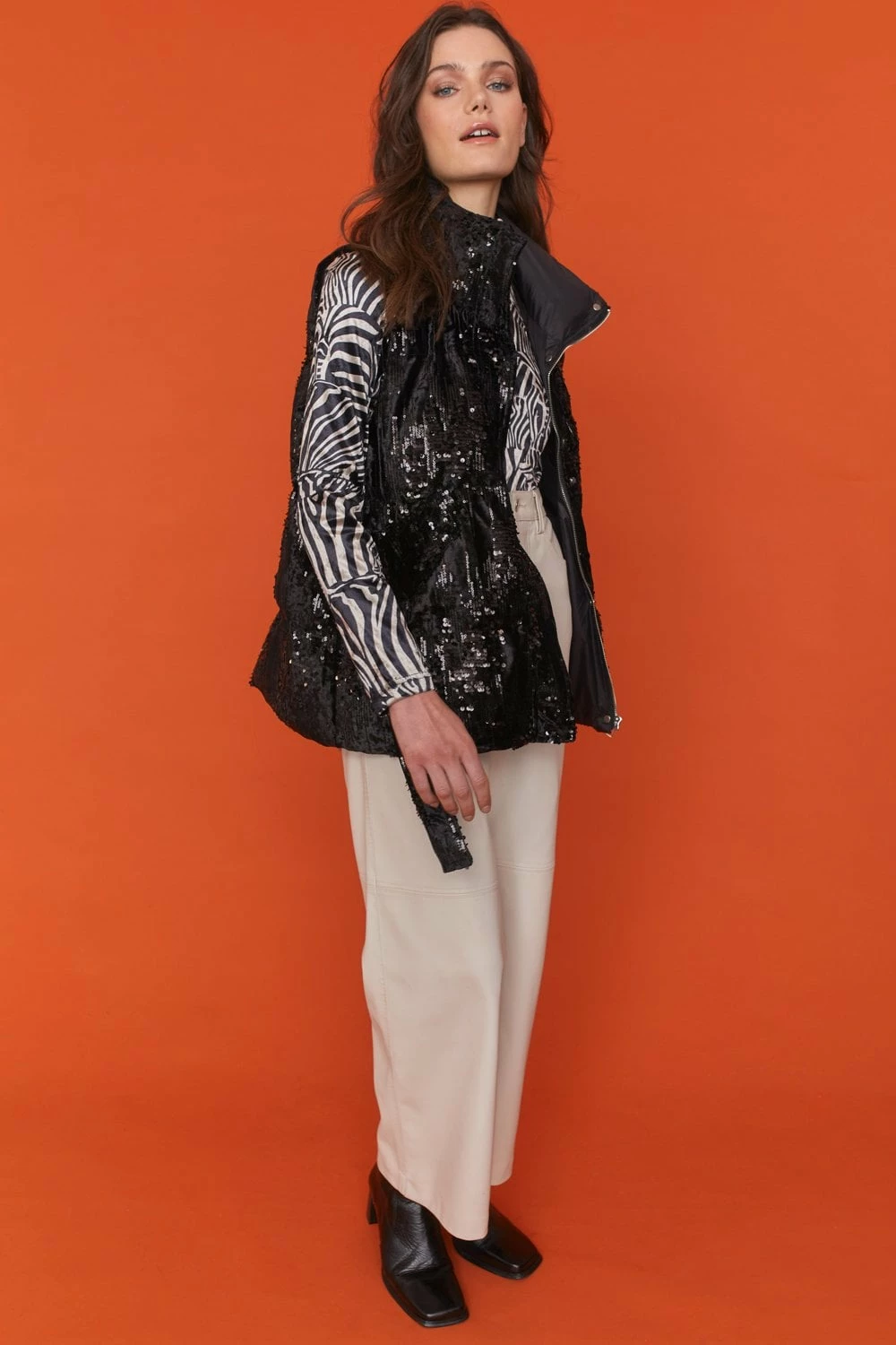 Sequin ribbed texture will elevate all your day-to-night looks! Cropped length with zip and press stud fastening. We just love how this instantly adds sparkle to your outfit!
