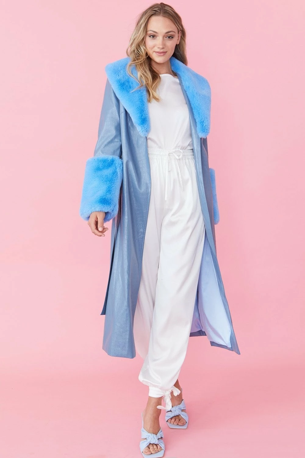 Our beloved Faux Leather Coat with Detachable Faux Fur Detailing is back with a longer length upgrade. We know you’ll be as obsessed as we are. Our shiny faux suede coat with subtle animal print features luxuriously soft faux fur cuffs and a collar with side pockets its’ the perfect piece in any season.