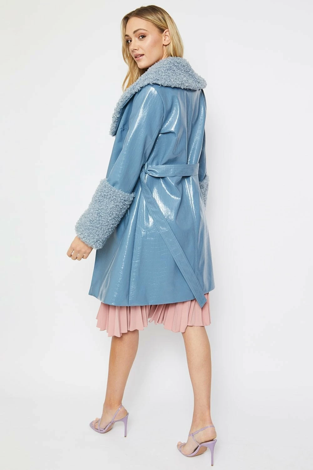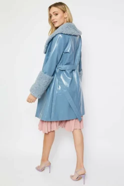 Coated Faux Suede Coat with Faux Shearling Cuffs and Collar