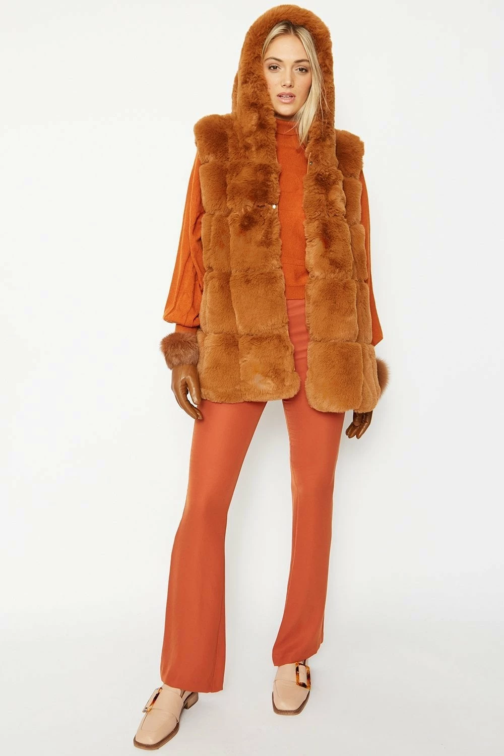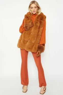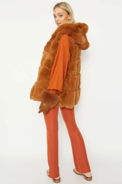 The ideal layering piece, this long faux fur gilet with hood, pockets and snap fasteners is a versatile piece, which has a silhouette-lengthening effect for a chic appeal. Made from the finish of faux fur materials this gilet will quickly become a wardrobe favourite; and with a wide variety of colours, there’s one for every outfit.