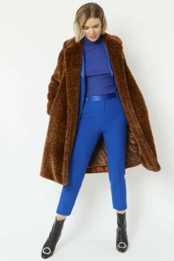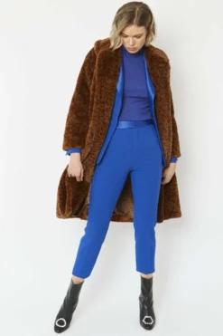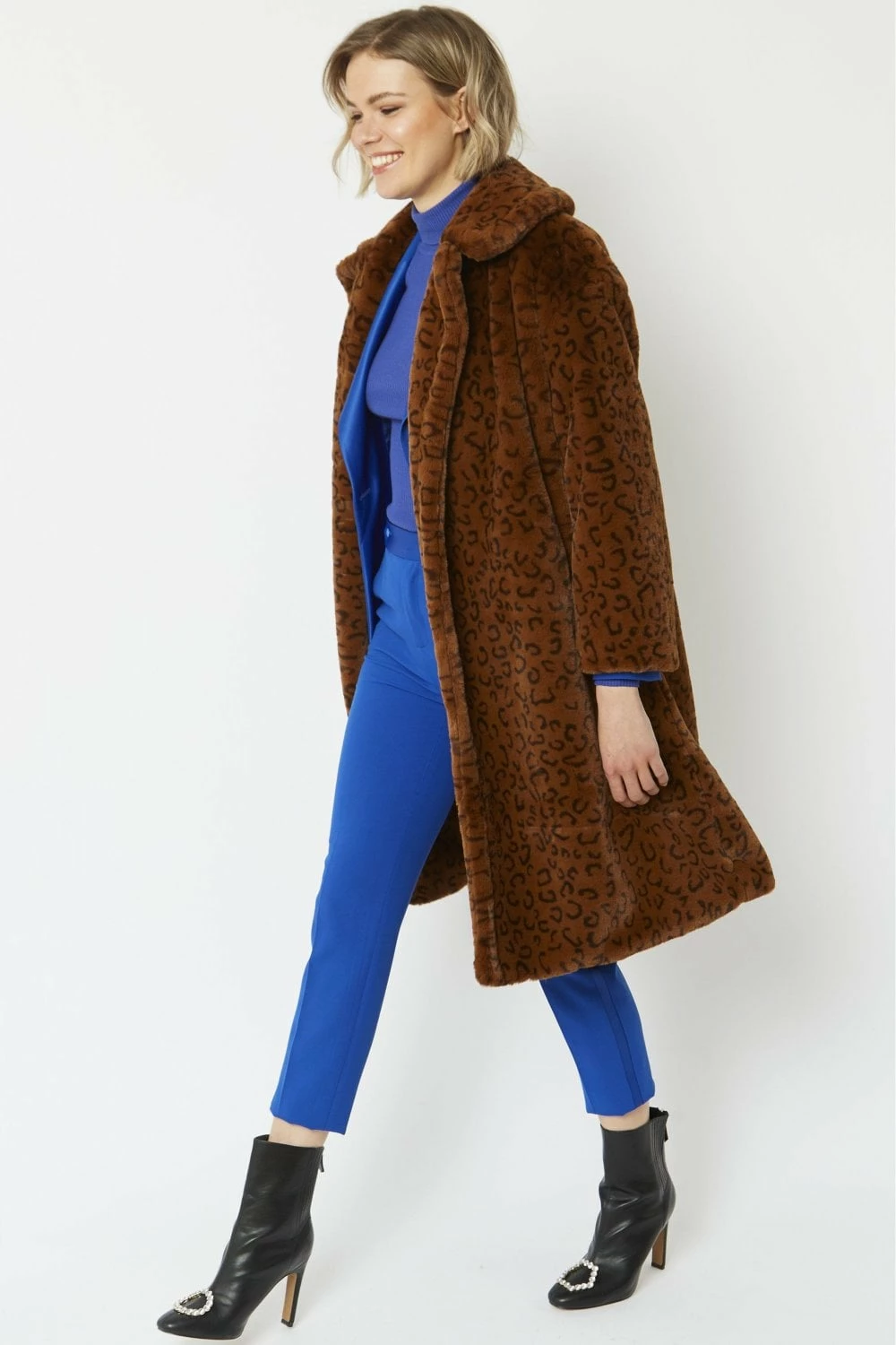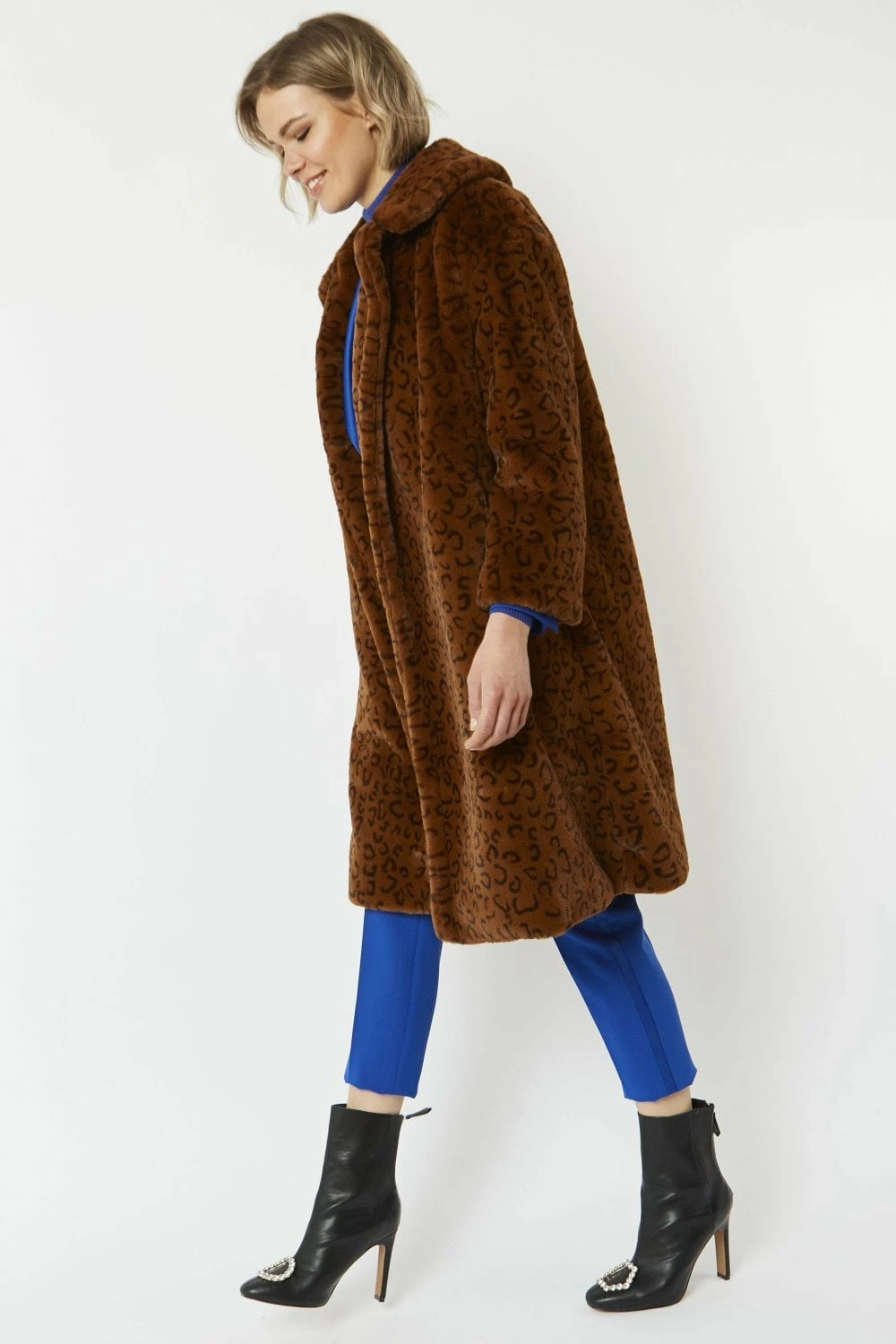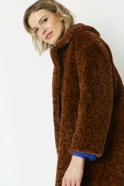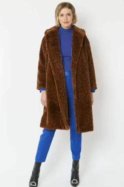 JAYLEY Chocolate Faux Fur Midi Shaved Shearling Coat
