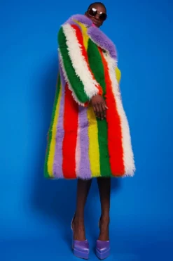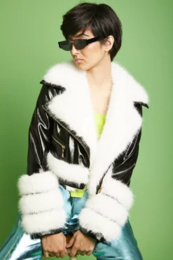 JAYLEY Black And White Faux Leather With Pink Faux Fur Biker Jacket