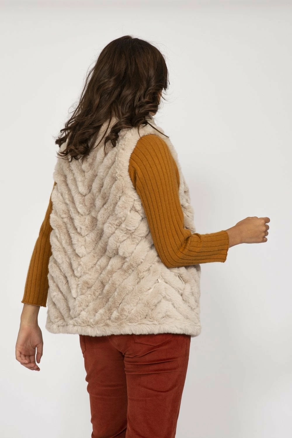 This gorgeous diagonal striped gilet is a go-to piece for country days and can be layered over any look. The sensationally soft faux fur adds texture to your favourite outfit whilst ensures you stay cosy throughout the colder months. It can be styled over knitwear, wet look jeans and a cute heeled boot for a casual evening look.