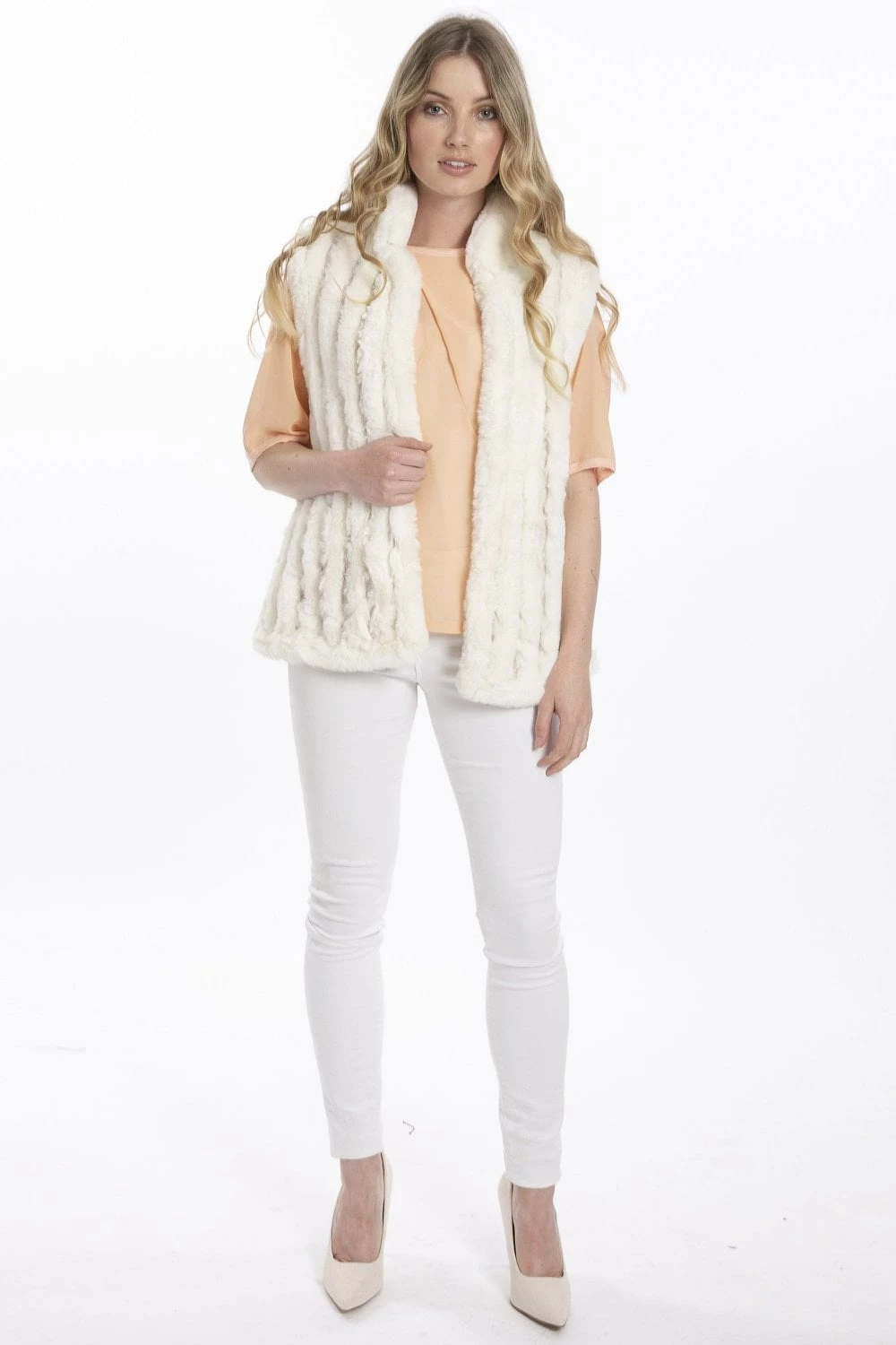 A beautiful faux fur gilet, which is sure to keep you warm throughout the colder month. A great piece for layering; couple with your favourite cashmere sweater and skirt of slim trousers and knitwear.