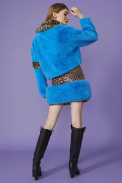 Who doesn’t love animal print and when combined with a bright bold blue, it’s easy to see why our latest arrival is such a big hit. This coat features an extra fluffy faux fur collar in leopard print, hook eye fastening, leopard print sleeve detail and full leopard print silk lining.