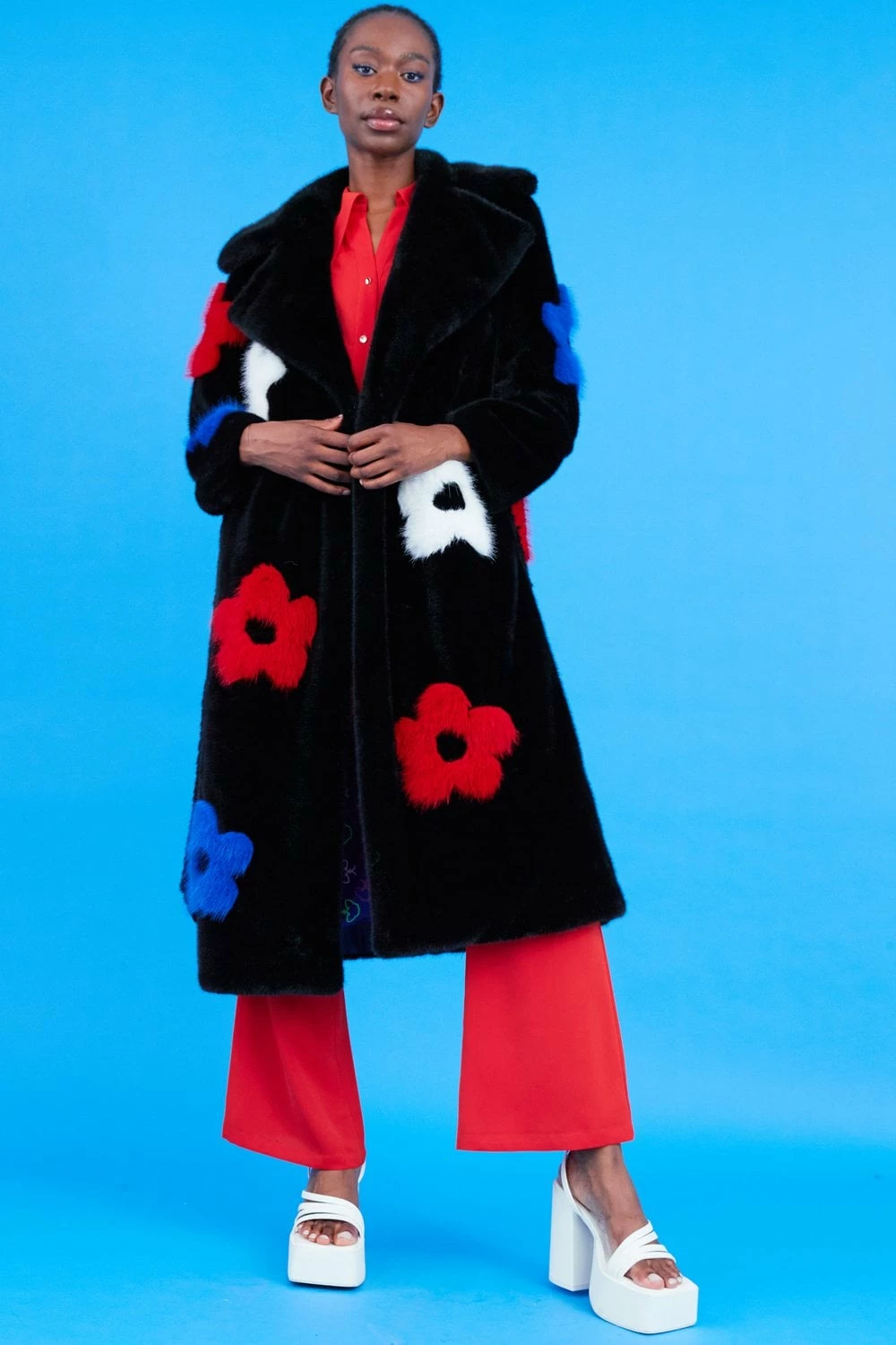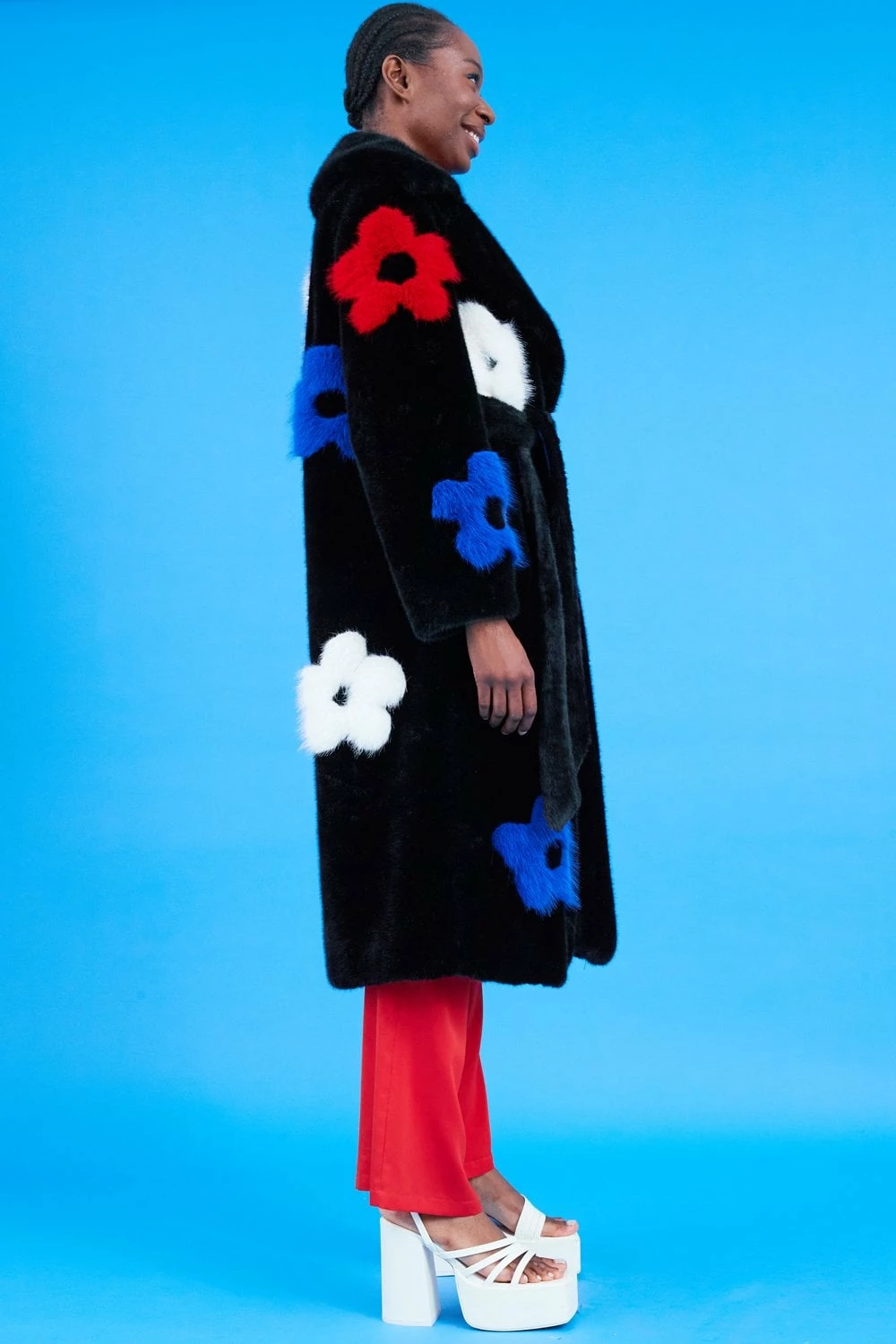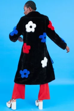It’s easy to see why our latest arrival is such a big hit. This coat features a pink flower design, and oversized lapels made from our sustainable bamboo faux fur. What is not to love?