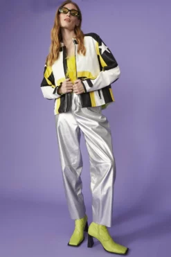 Add some attitude to your look with this motocross racer bomber jacket. Featuring a eco-leather material a motor cross racer design and zip fastenings, we’re obsessed. Style with faux leather bottoms, a white tee and statement heels for a look that will steal the stares.