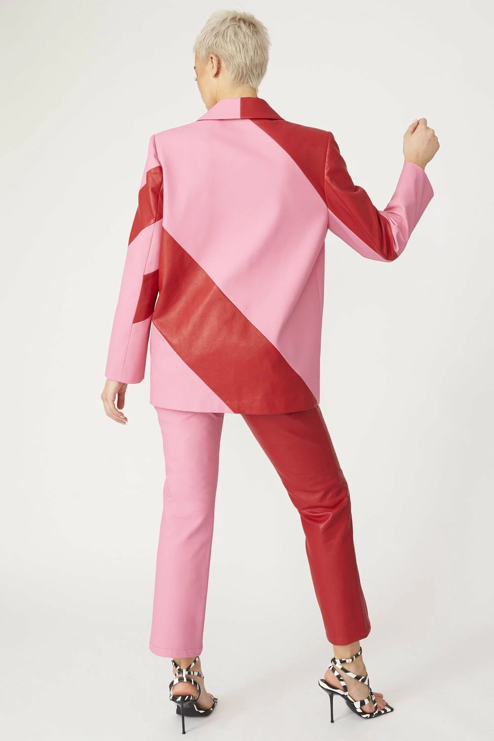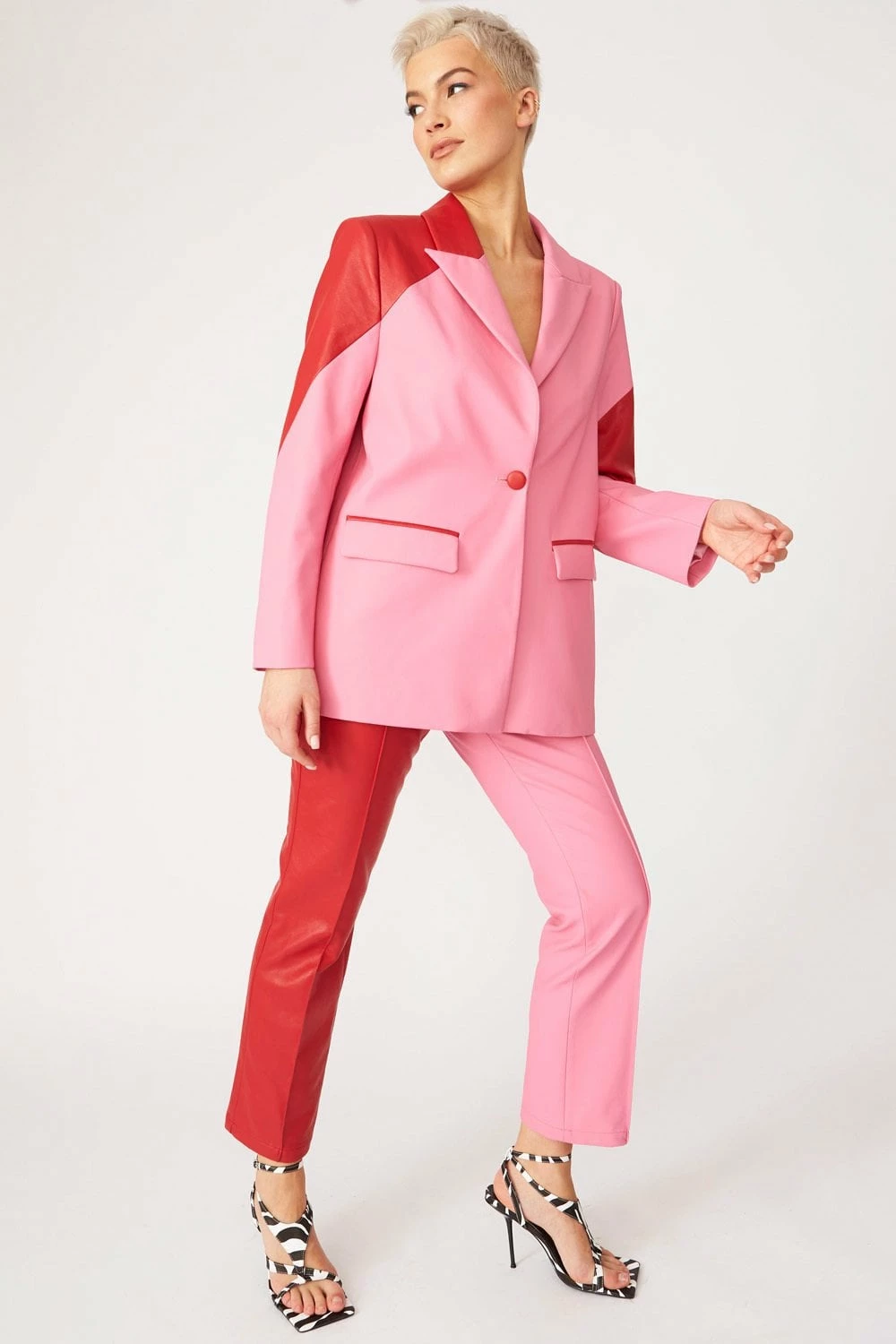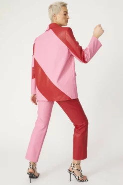 Follow the latest trends with our Faux leather Kate Blazer has a gorgeous metallic finish with press stud Fastening.