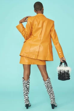 Follow the latest trends with our Faux Fur leather Kate Blazer has a gorgeous metallic finish with press stud Fastening.