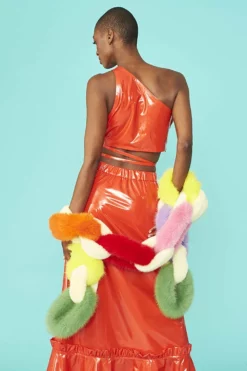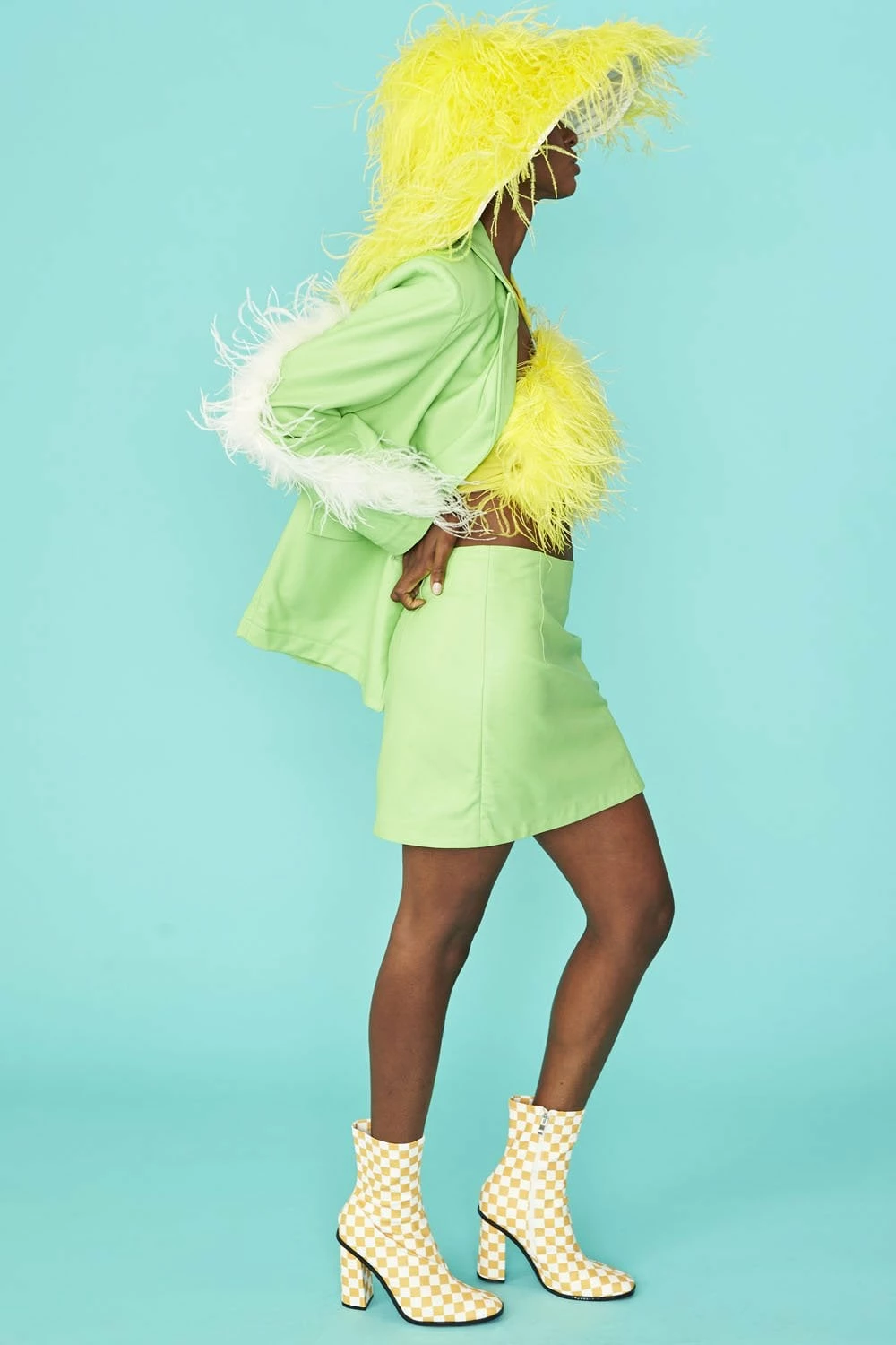 Part of our metallic collection this mini skirt co-ord featuring a split is crafted from our gorgeous eco-leather