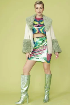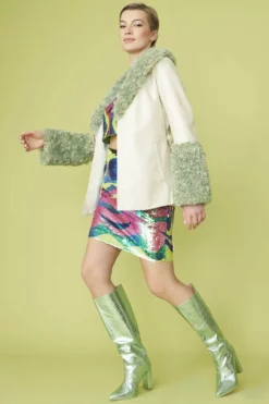 The most gorgeous faux suede coat with faux shearling detailing. We know you’ll be obsessed! Our faux suede coat with subtle check print features luxuriously soft faux shearling cuffs and a collar with a belt and side pockets.