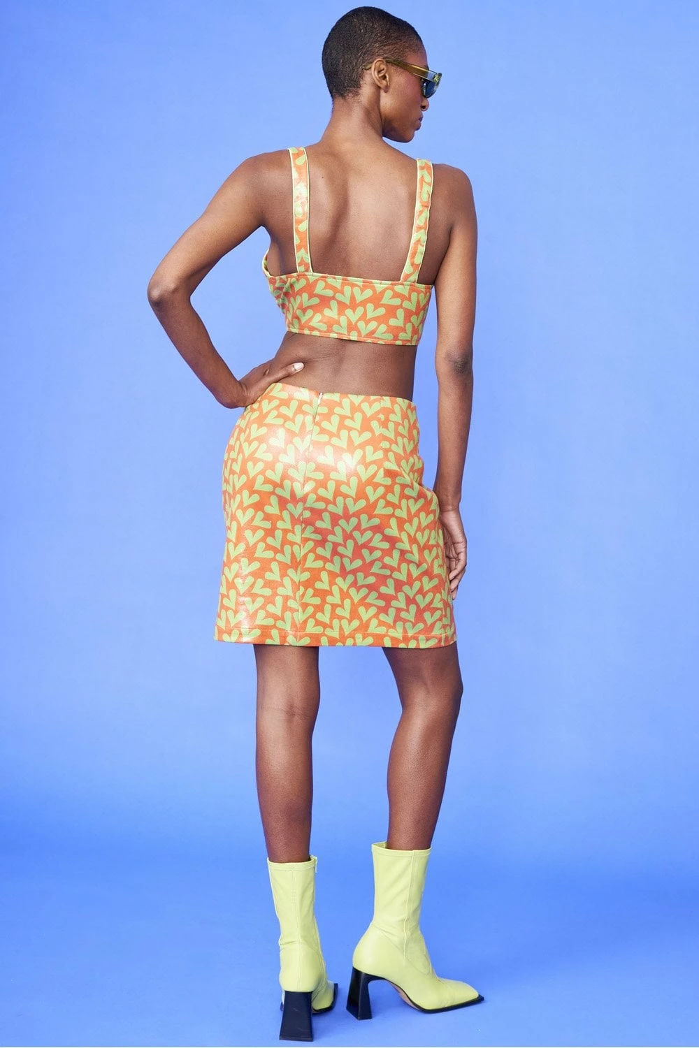 JAYLEY Faux Suede Orange And Green Love Heart Crop Top