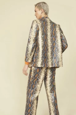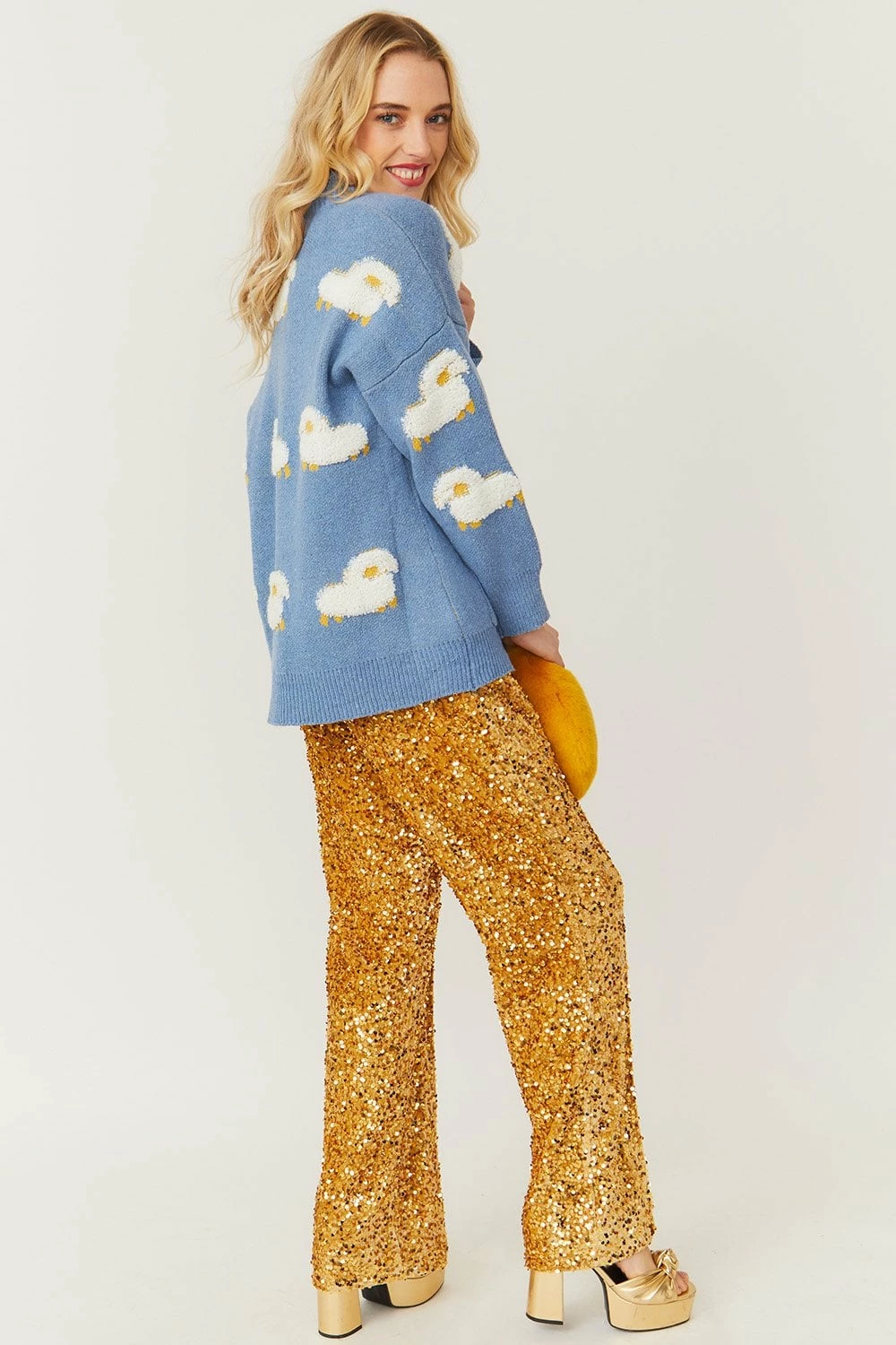 Gold-tone velvety embellished flared trousers featuring sequin embroidery, a high elasticated waist, silk lining and pockets.
