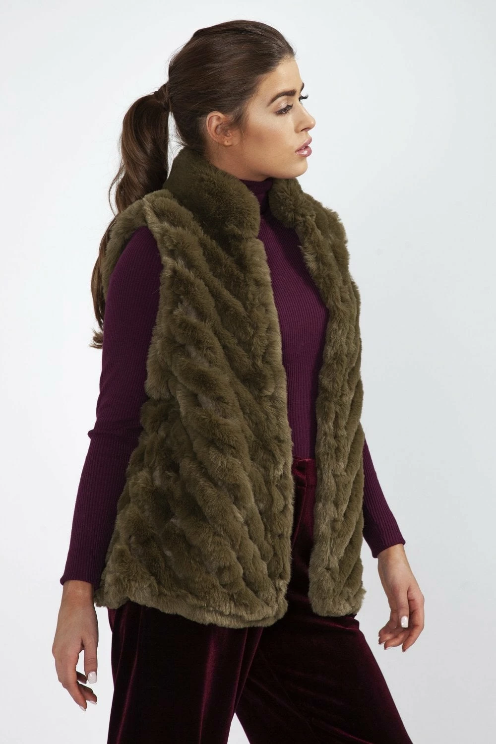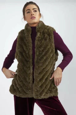 This gorgeous diagonal striped gilet is a go-to piece for country days and can be layered over any look. The sensationally soft faux fur adds texture to your favourite outfit whilst ensures you stay cosy throughout the colder months. It can be styled over knitwear, wet look jeans and a cute heeled boot for a casual evening look.