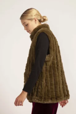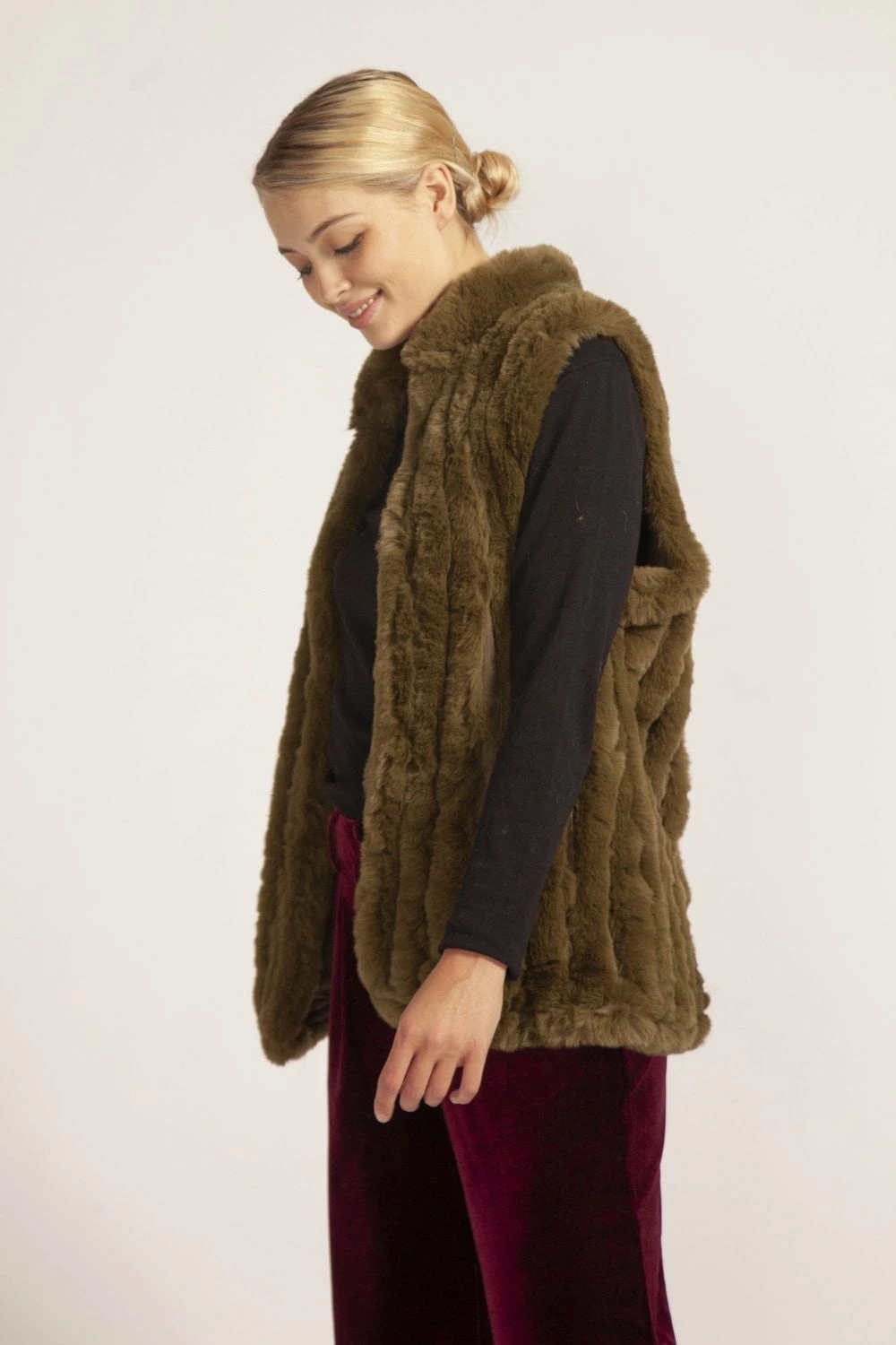 Add a touch of country style to your wardrobe with this luxurious faux fur gilet with vertical panelling. This piece is ideal for layering over your favourite knitwear or long sleeve dresses and tops.