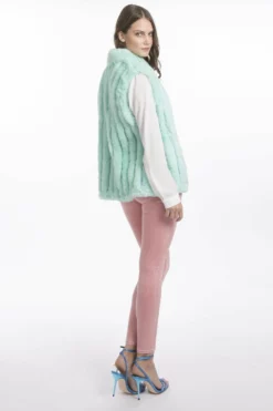 A beautiful faux fur gilet, which is sure to keep you warm throughout the colder month. A great piece for layering; couple with your favourite cashmere sweater and skirt of slim trousers and knitwear.