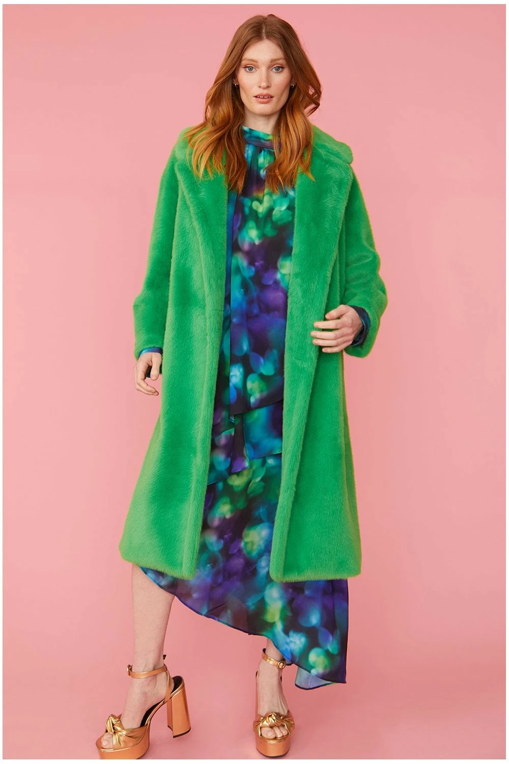 Cut to a flattering mid-length this faux fur coat is a timeless piece that’s associated with glamour and elegance. Featuring side pockets, full lining and peaked lapels, this coat is made to be worn open, and to accentuate your below dress or pair or trousers.