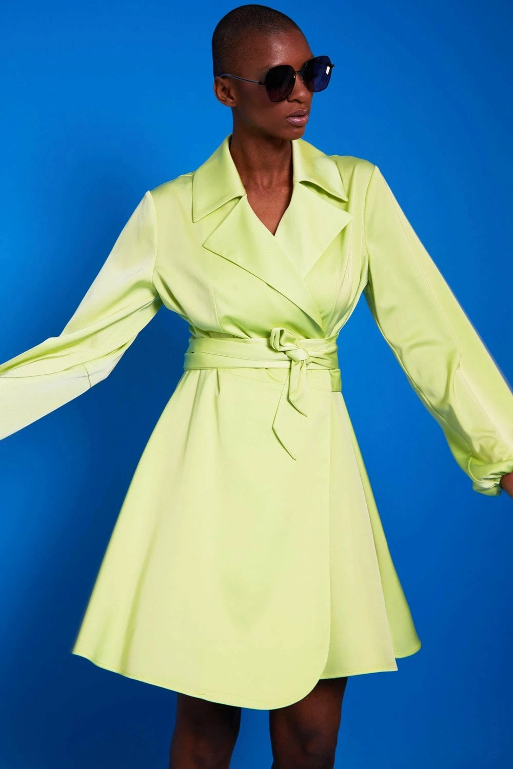 Get your hands on this stunning green silk-blend wrap dress with a tie waist belt and classic collar. Cut to a flattering mid-length with a figure-enhancing fitted bodice this dress is perfect for those summer events.