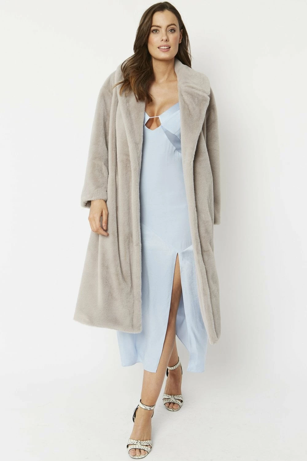 Wrap up with this classic faux fur coat available in a wide range of colours. The longer length and soft faux fur pockets lend a flattering fit to the look. With a silk blend lining, this coat adds a touch of finesse, right down to the smaller details.