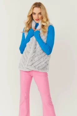 This gorgeous diagonal striped gilet is a go-to piece for country days and can be layered over any look. The sensationally soft faux fur adds texture to your favourite outfit whilst ensures you stay cosy throughout the colder months. It can be styled over knitwear, wet look jeans and a cute heeled boot for a casual evening look.