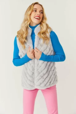 This gorgeous diagonal striped gilet is a go-to piece for country days and can be layered over any look. The sensationally soft faux fur adds texture to your favourite outfit whilst ensures you stay cosy throughout the colder months. It can be styled over knitwear, wet look jeans and a cute heeled boot for a casual evening look.