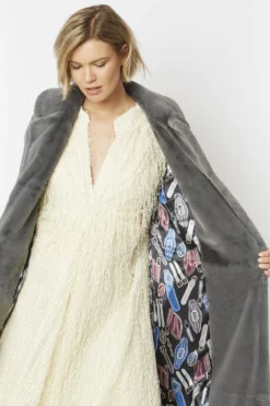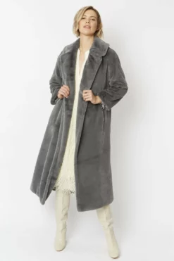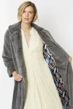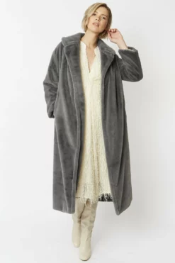 Shop this faux fur vintage-inspired coat a luxe piece that’s perfect for transitioning from day to night. We love the oversized shaping, long length and of course the feeling of total comfort and luxury.This coat features full satin lining and pockets.