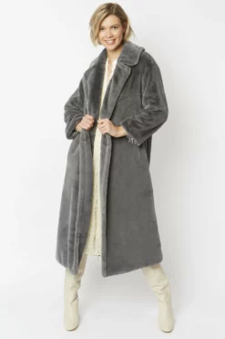 Shop this faux fur vintage-inspired coat a luxe piece that’s perfect for transitioning from day to night. We love the oversized shaping, long length and of course the feeling of total comfort and luxury.This coat features full satin lining and pockets.