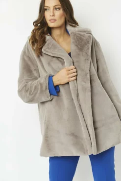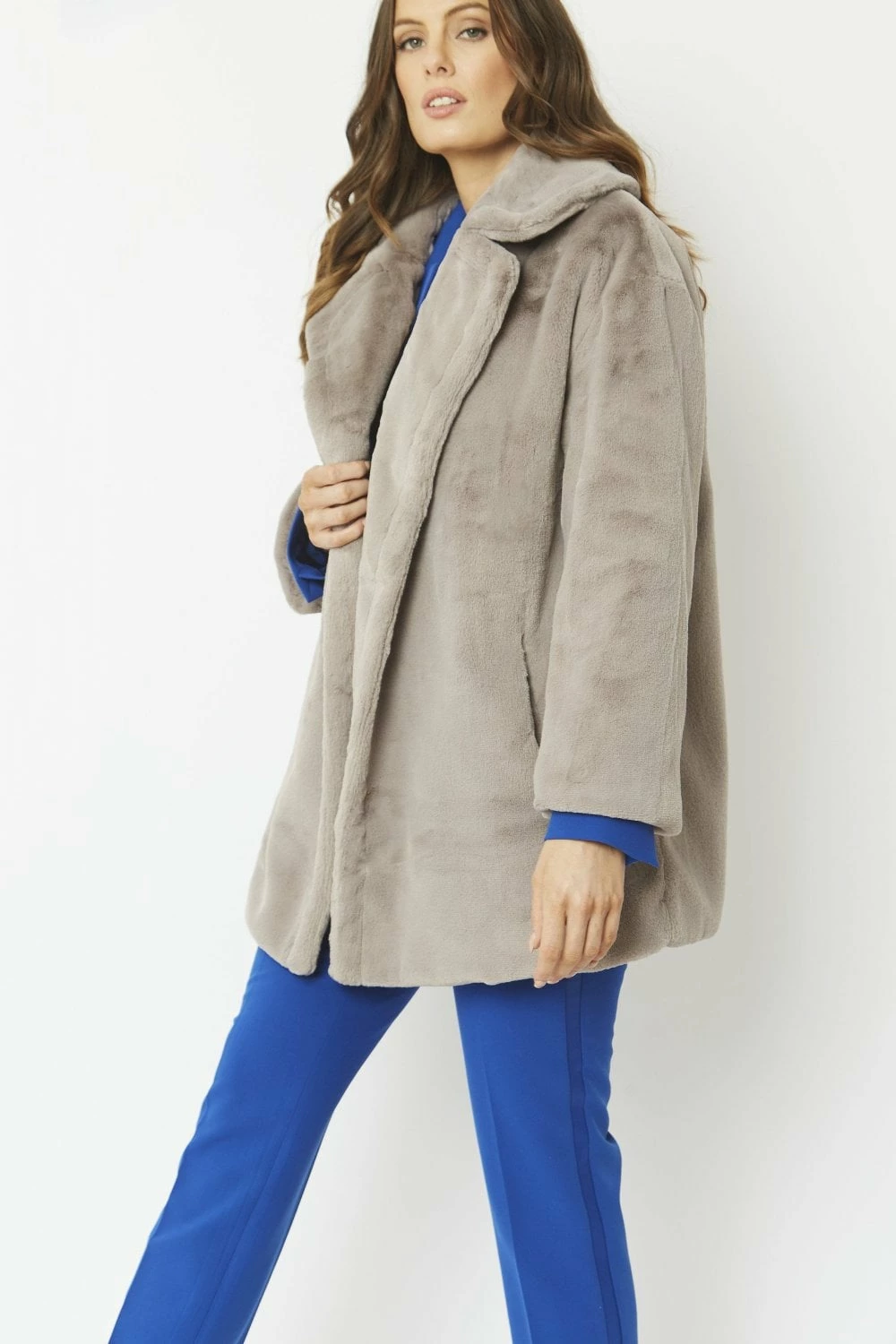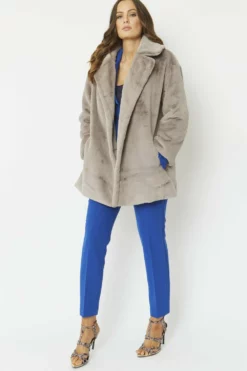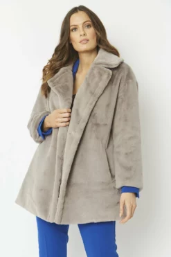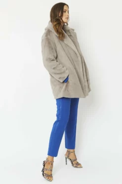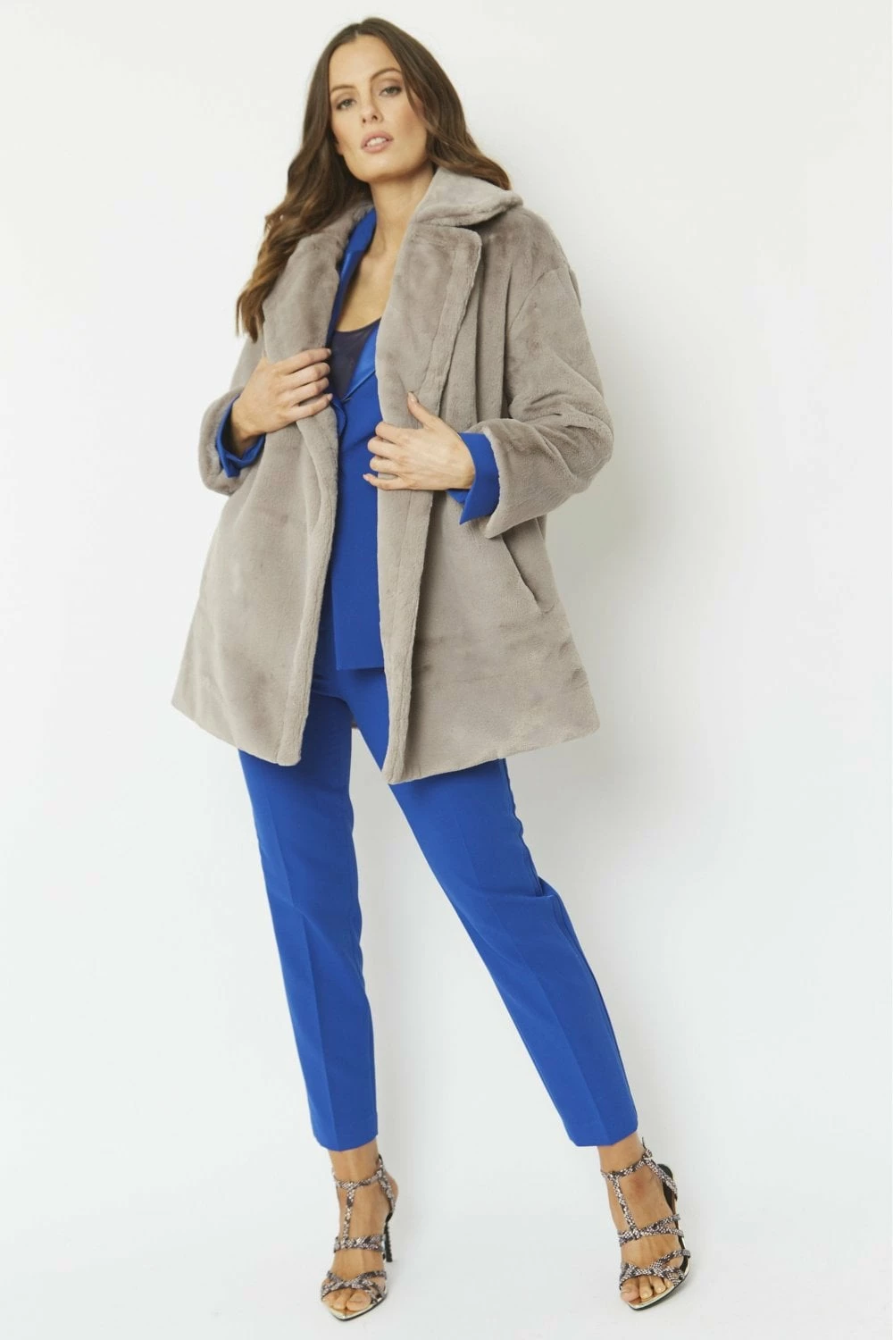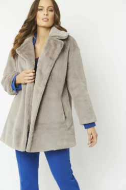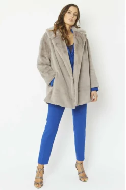 Jayleys iconic faux fur midi coat with silk blend lining is a real statement piece. Beautiful and bold this sumptuously soft coat will keep you warm and in style throughout the cold wintry months.