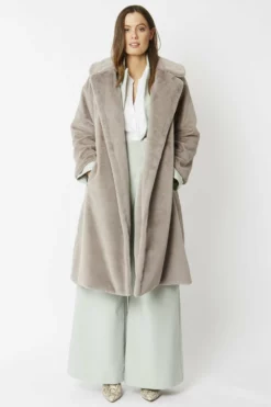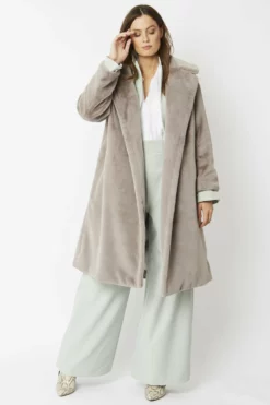 Cut to a flattering mid-length this faux fur coat is a timeless piece that’s associated with glamour and elegance. Featuring side pockets, full lining and peaked lapels, this coat is made to be worn open, and to accentuate your below dress or pair or trousers.