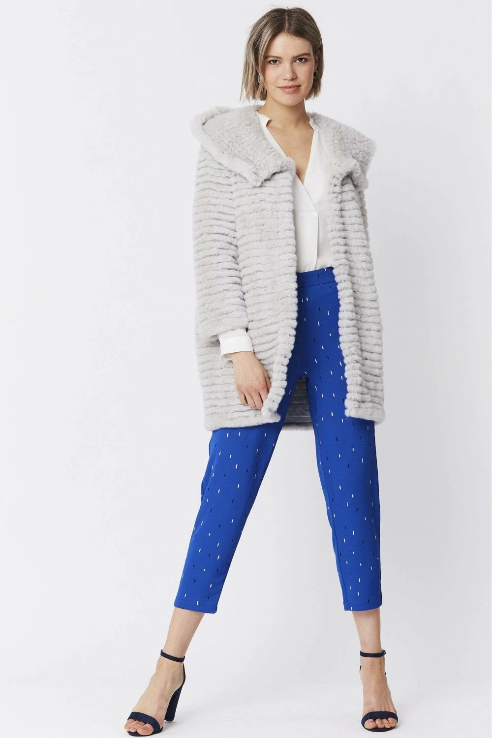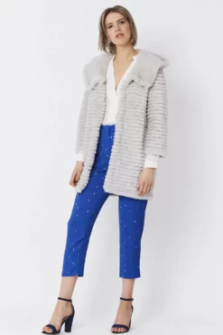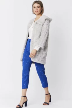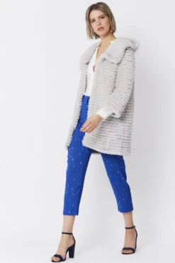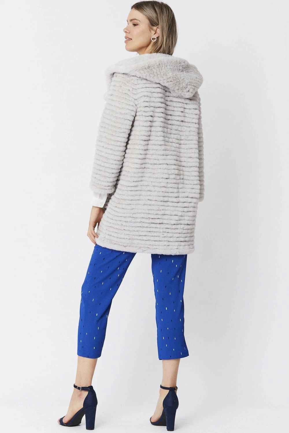 JAYLEY Grey Faux Mink Fur Hooded Coat