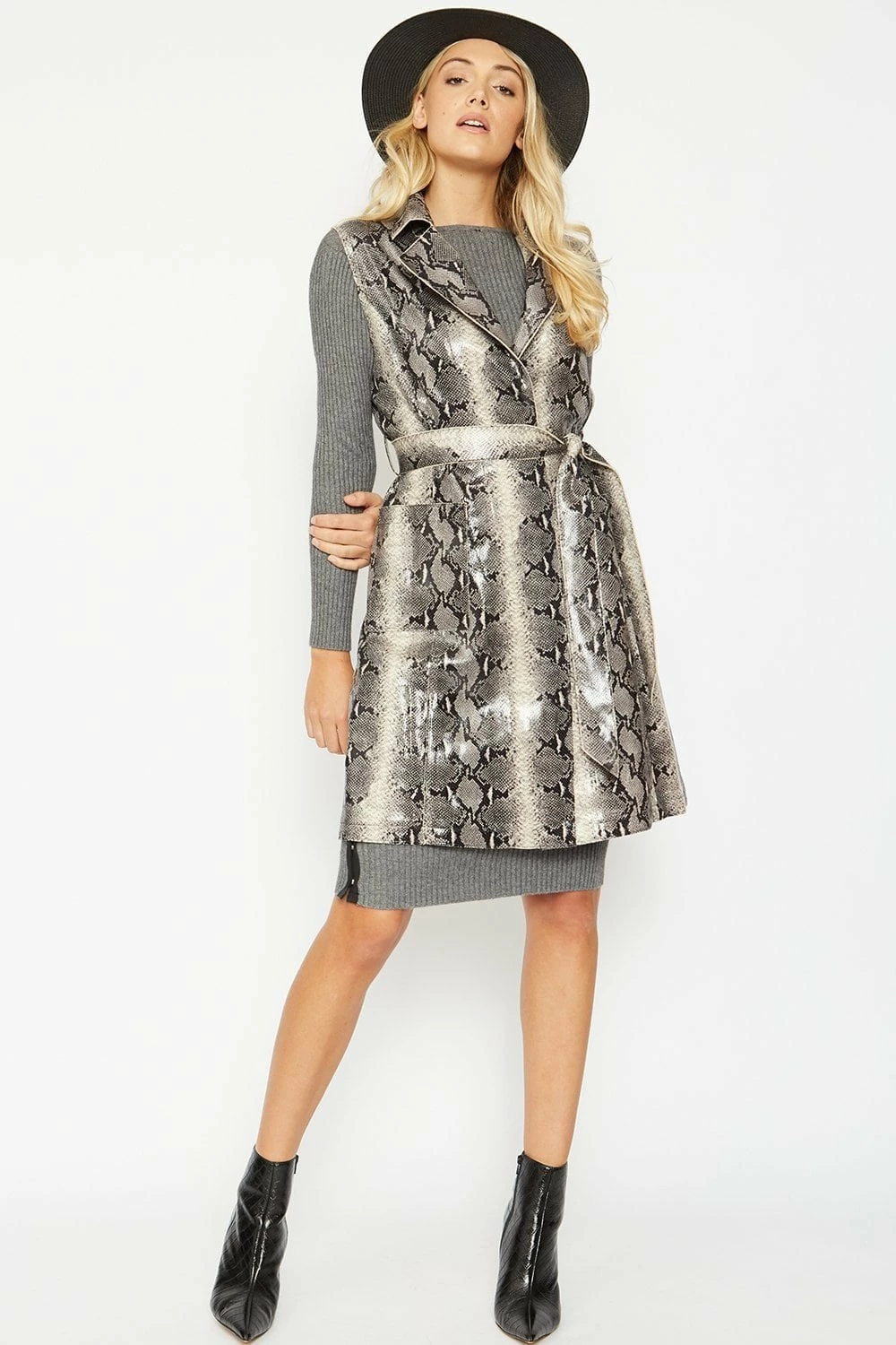 This faux suede waistcoat is cut to a flattering mid-length and boasts a classical cut shape with peaked lapels. Featuring a subtle snake print design, this gilet is ideal for this season as it’s not only lightweight but water resistant too. Just in case you get caught in a shower.