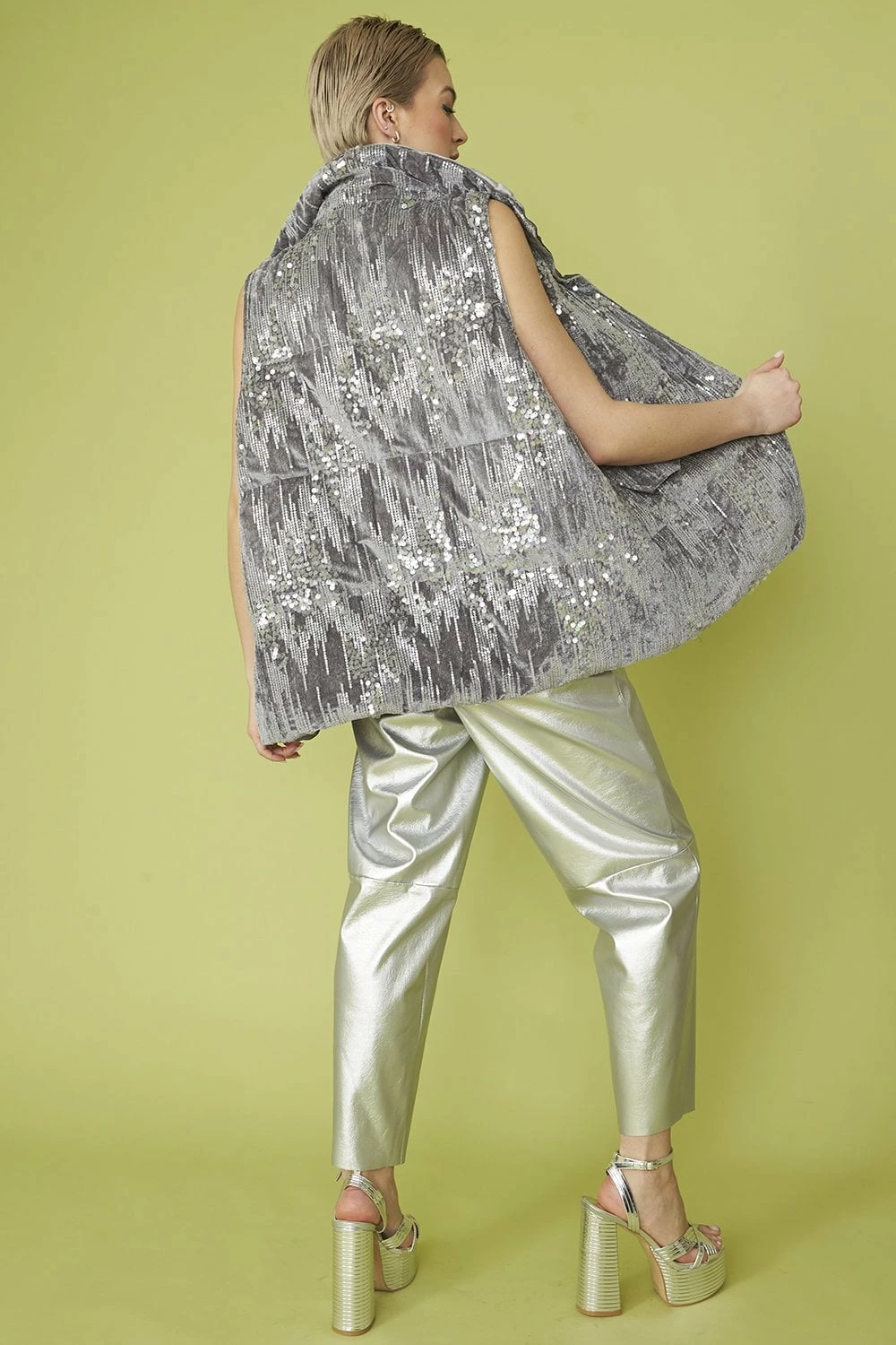Sequin ribbed texture will elevate all your day-to-night looks! Cropped length with zip and press stud fastening. We just love how this instantly adds sparkle to your outfit!
