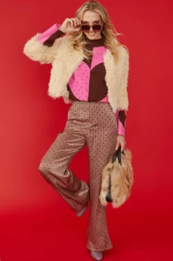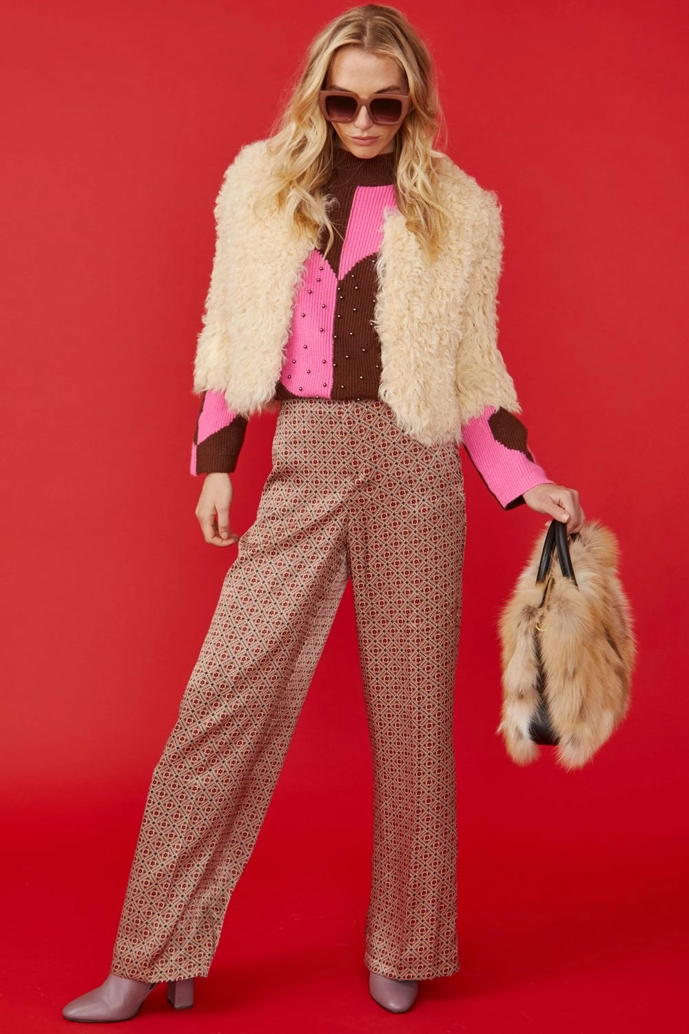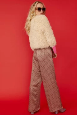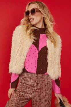 Hand knitted and incredibly soft to touch, this cropped faux fur jacket features full silk lining, hook and eye front fastening and three-quatre length sleeves.
