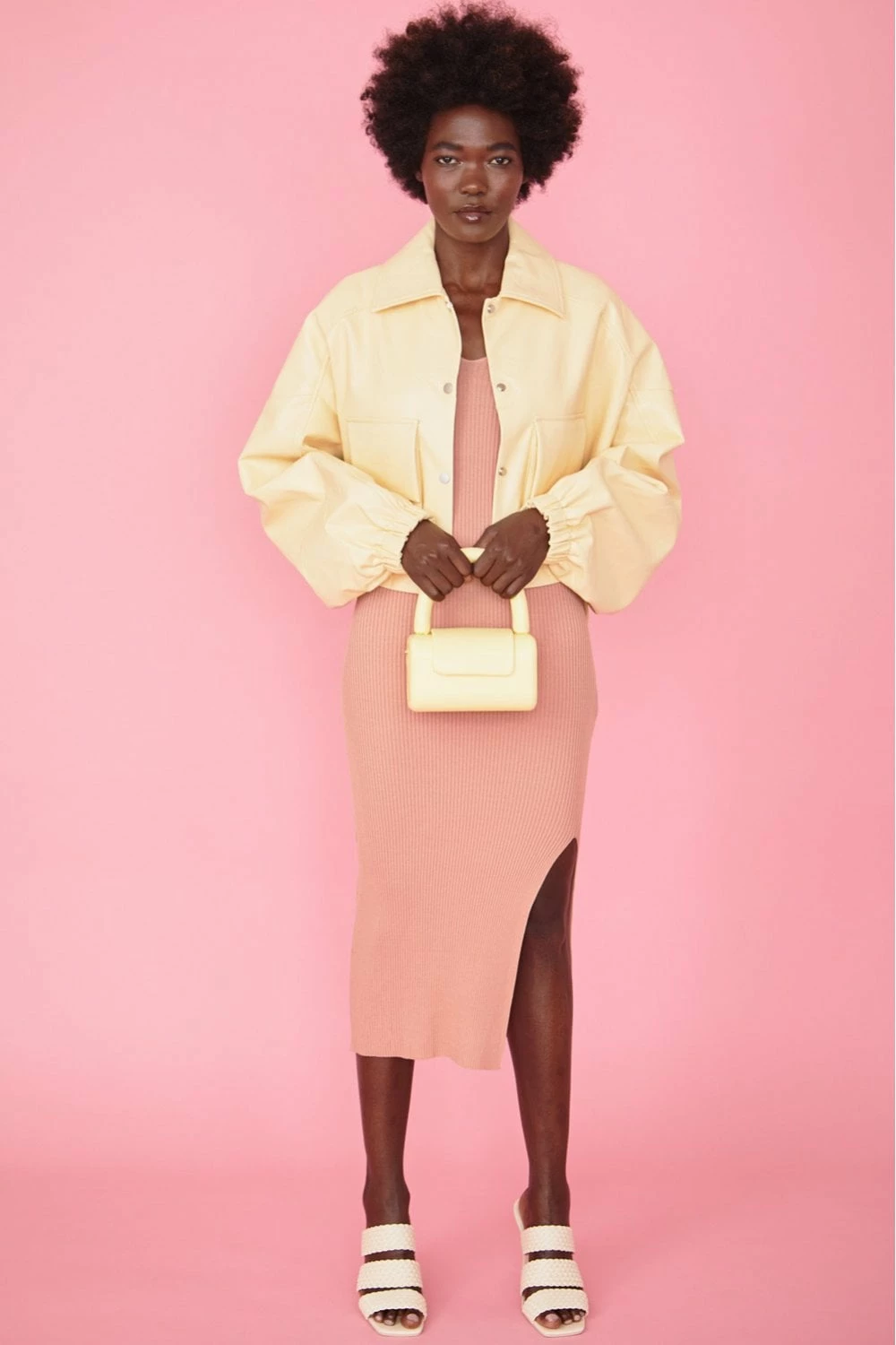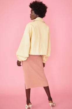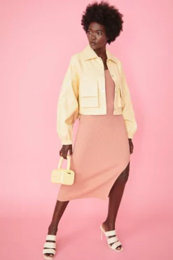 Your transitional wardrobe just got a little sweeter. This lemon bat-winged jacket is crafted from our exclusive eco leather and features press stud fastening, front pockets and cuffed sleeves.