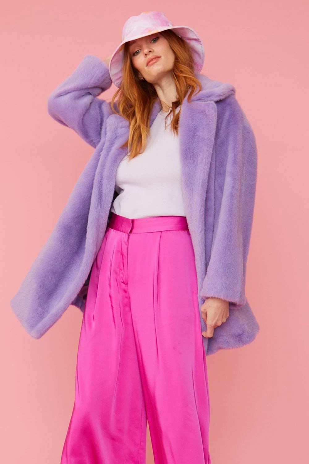 Cut to a flattering mid-length this faux fur coat is a timeless piece that’s associated with glamour and elegance. Featuring side pockets, full lining and peaked lapels, this coat is made to be worn open, and to accentuate your below dress or pair or trousers.